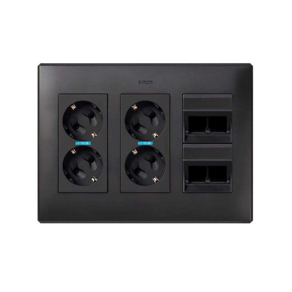 Simon - Plaque VDM inclinée sans volet anti-poussière - 2xRJ45 - Graphite - 50000186-038