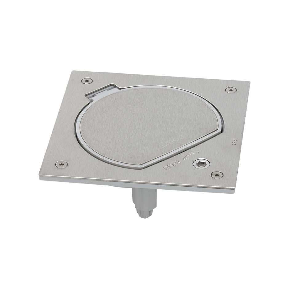 Porte-mécanismes fermeture de sécurité avec 1 prise de courant Schuko K45 et 1 RJ45 Cat.5e UTP - Acier inoxydable