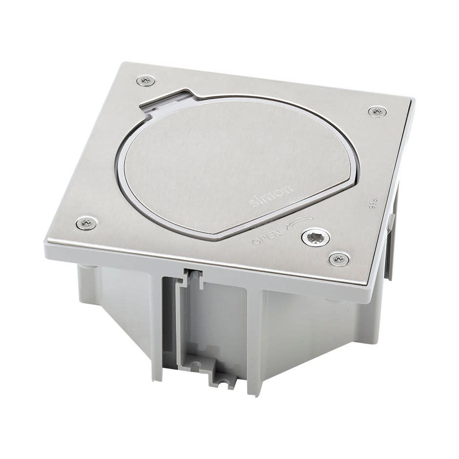Simon - Porte-méc fermeture sécurité 1 prise Schuko K45 1 RJ45 Cat.5e UTP - Acier inox - KSE15USEC/23/72