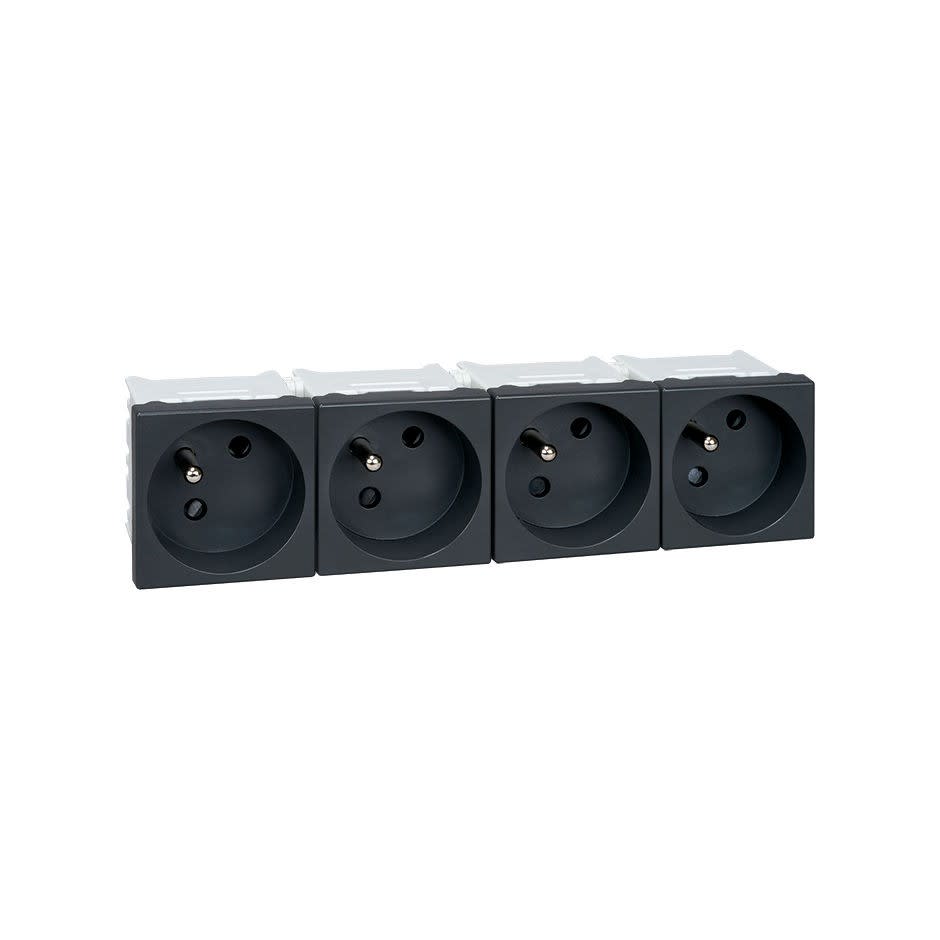 Simon - Prise franç. quadruple 16A 250V~ sécu. + bornage rapide graphite K45 - K34/14