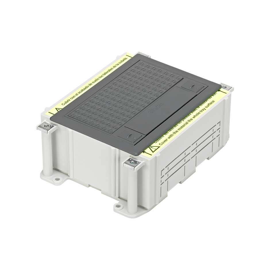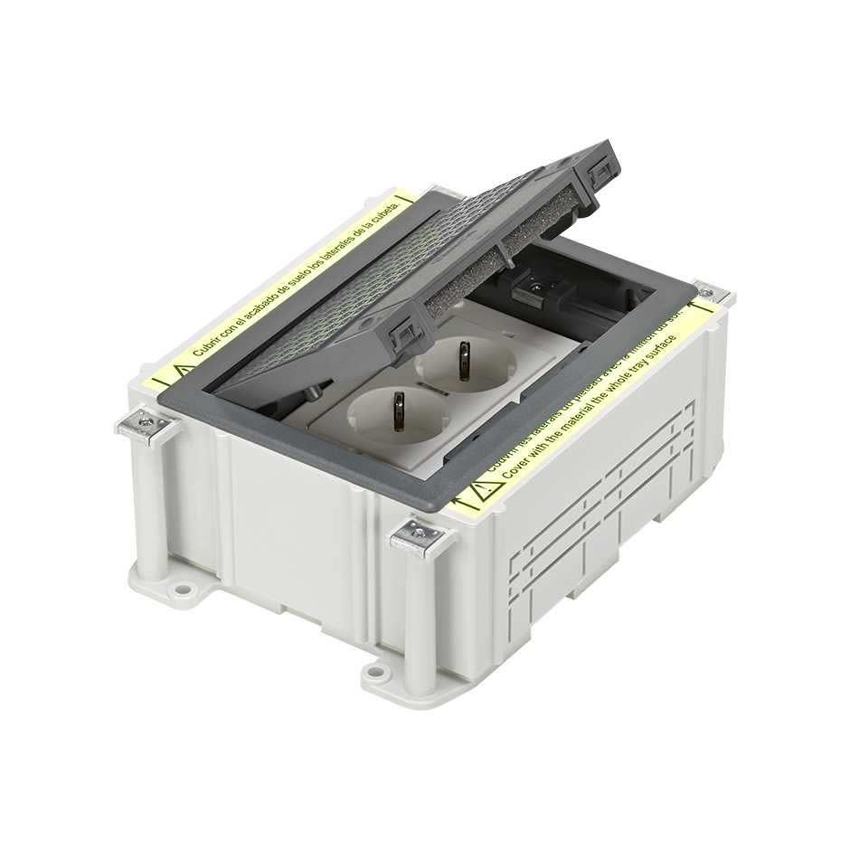 Pour compléter l’installation du produit, celui-ci doit être associé à une boîte de sol pour béton pour 1 module double , couleur grise (réf.52050001-035) ou graphite (réf.52050001-038).