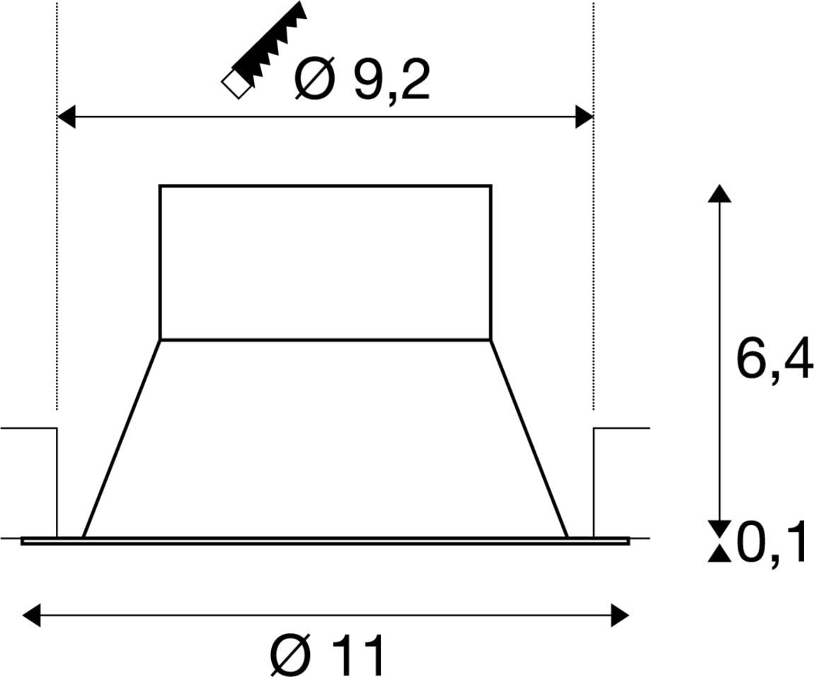 Intérieur plafonnier encastré avec corps lumineux LED fixe. Matériau principal: Aluminium et polycarbonate (PC), Couleur: blanc, Dimmable: Variateur en début de phase,Variateur en fin de phase, Form: rond, Puissance assignée: 9 W, Flux lumineux assigné: 800 / 880 / 850 lm, Température de couleur (CCT): 3000/4000/5700K, Indice général de rendu des couleurs (IRC) Ra: 80, Maintien du flux lumineux: L70B50 ≥ 30000 h, Classe de protection (EN 61140): II, Degré de résistance aux chocs selon IEC 62262: IK02, Tension d'alimentation: 220-240V ~50/60Hz sek. 120mA, Diamètre du luminaire: 11 cm, Diamètre de la découpe: 9.2 cm, Dimension (L/W/H): ( 11 / 11 / 6.5 cm ), Poids: 0.19 kg. Le produit répond aux exigences essentielles des directives européennes applicables et de la loi sur la sécurité des produits et porte le marquage CE.SLV Référence 1001264 / EAN 4024163195683