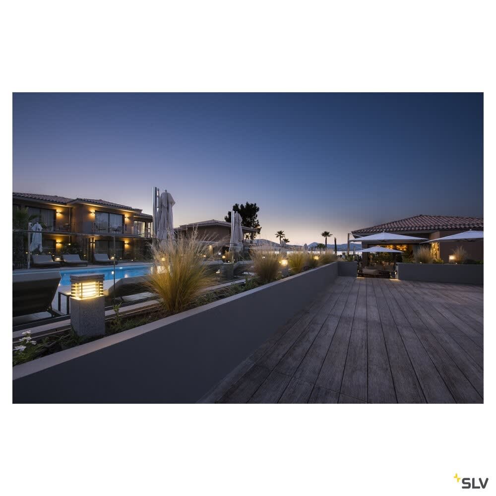 Extérieur lampadaires. Matériau principal: Granite et Inox 304, Couleur: gris et chrome, Culot: E27, Form: rectangulaire, Puissance assignée: 15 W, Classe de protection (EN 61140): I, Indice de protection (DIN EN 60529): IP44, donc protection contre les corps étrangers solides > 1mm et protection contre les projections d'eau de toutes directions, Tension d'alimentation: 230V ~50Hz, Dimension (L/W/H): ( 12 / 12 / 40 cm ), Poids: 11.234 kg. Le produit répond aux exigences essentielles des directives européennes applicables et de la loi sur la sécurité des produits et porte le marquage CE.SLV Référence 231410 / EAN 4024163110136