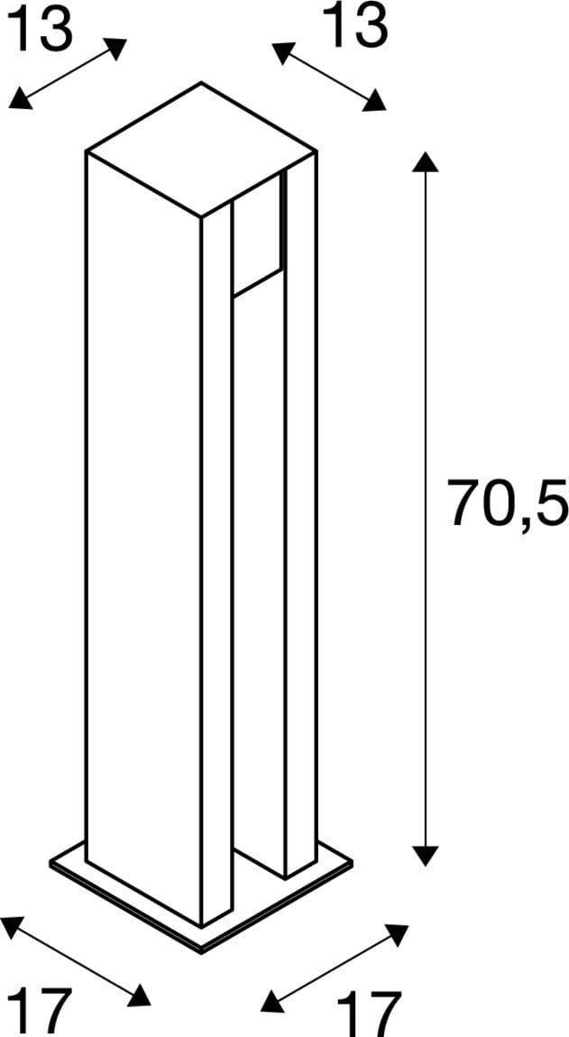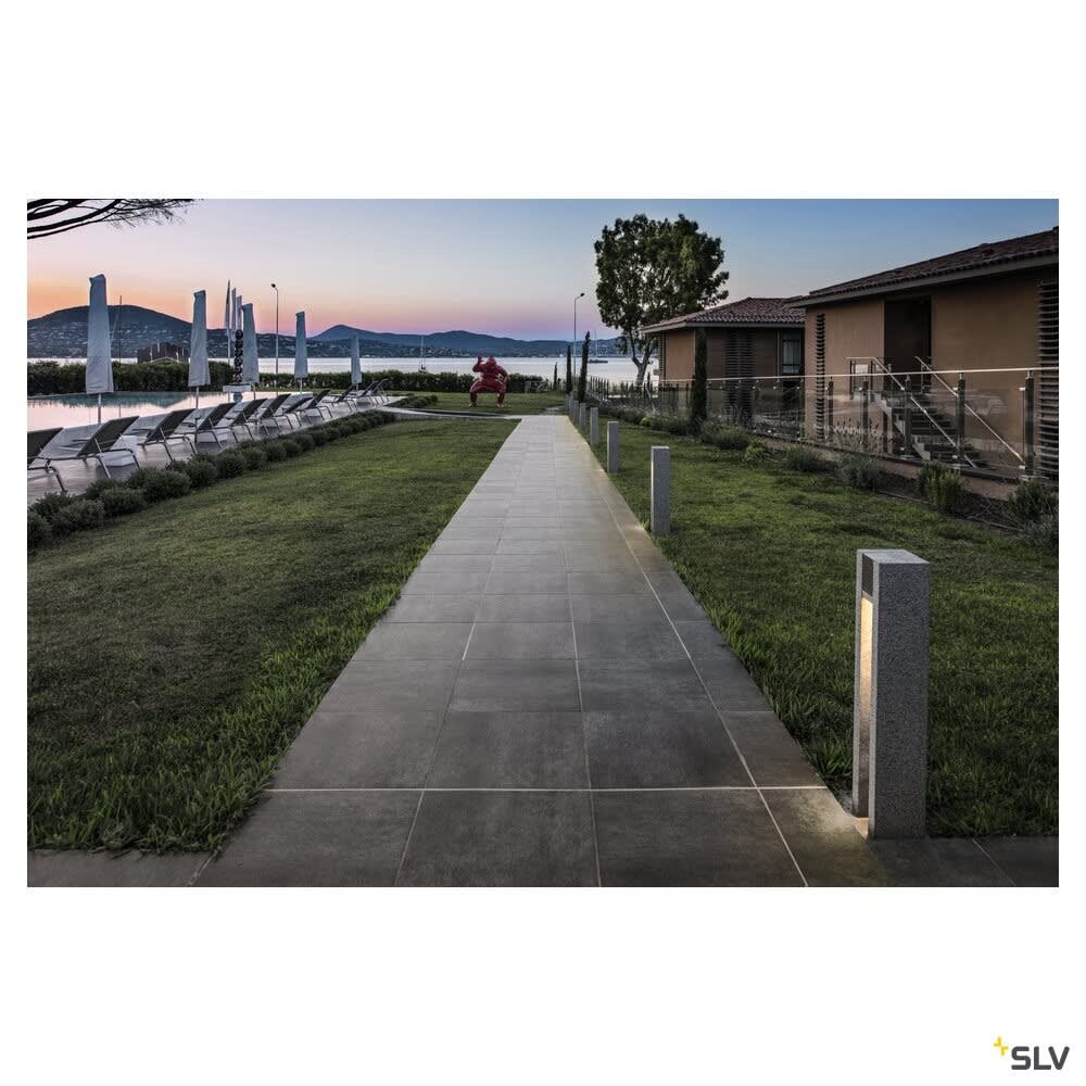 Extérieur lampadaires. Matériau principal: Granite et Inox 304, Couleur: gris et chrome, Culot: GU10, Form: carré, Puissance assignée: 4 W, Classe de protection (EN 61140): I, Indice de protection (DIN EN 60529): IP55, donc protection contre les corps étrangers solides > 1mm et protection contre les projections d'eau de toutes directions, Degré de résistance aux chocs selon IEC 62262: IK02, Tension d'alimentation: 230V ~50Hz, Dimension (L/W/H): ( 13 / 13 / 70.5 cm ), Poids: 25.671 kg. Le produit répond aux exigences essentielles des directives européennes applicables et de la loi sur la sécurité des produits et porte le marquage CE.SLV Référence 231440 / EAN 4024163136372