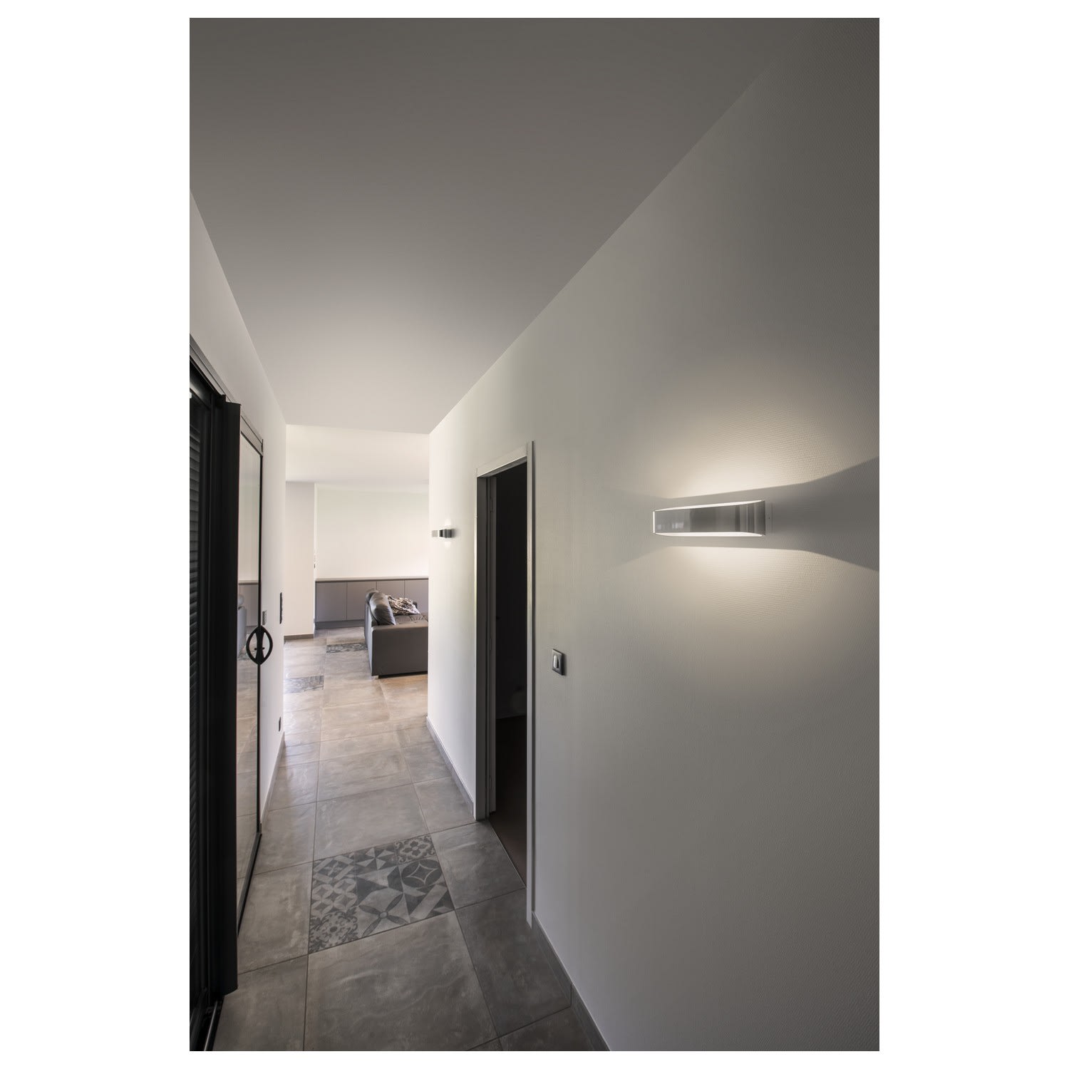 L’applique en saillie marquante LED UP/DOWN ASSO dispose de deux puissantes LED COB très modernes qui délivrent une lumière indirecte. Elle convient ainsi parfaitement pour un éclairage sans éblouissement des escaliers, des accès et des pièces. Grâce à la fonction Dim to Warm, il est possible de régler/varier aisément l’ambiance lumineuse selon vos envies. Le convertisseur à courant constant intégré dans la patère permet un raccordement direct à la tension secteur 230V. Ce luminaire comprend des modules à LED intégrés.