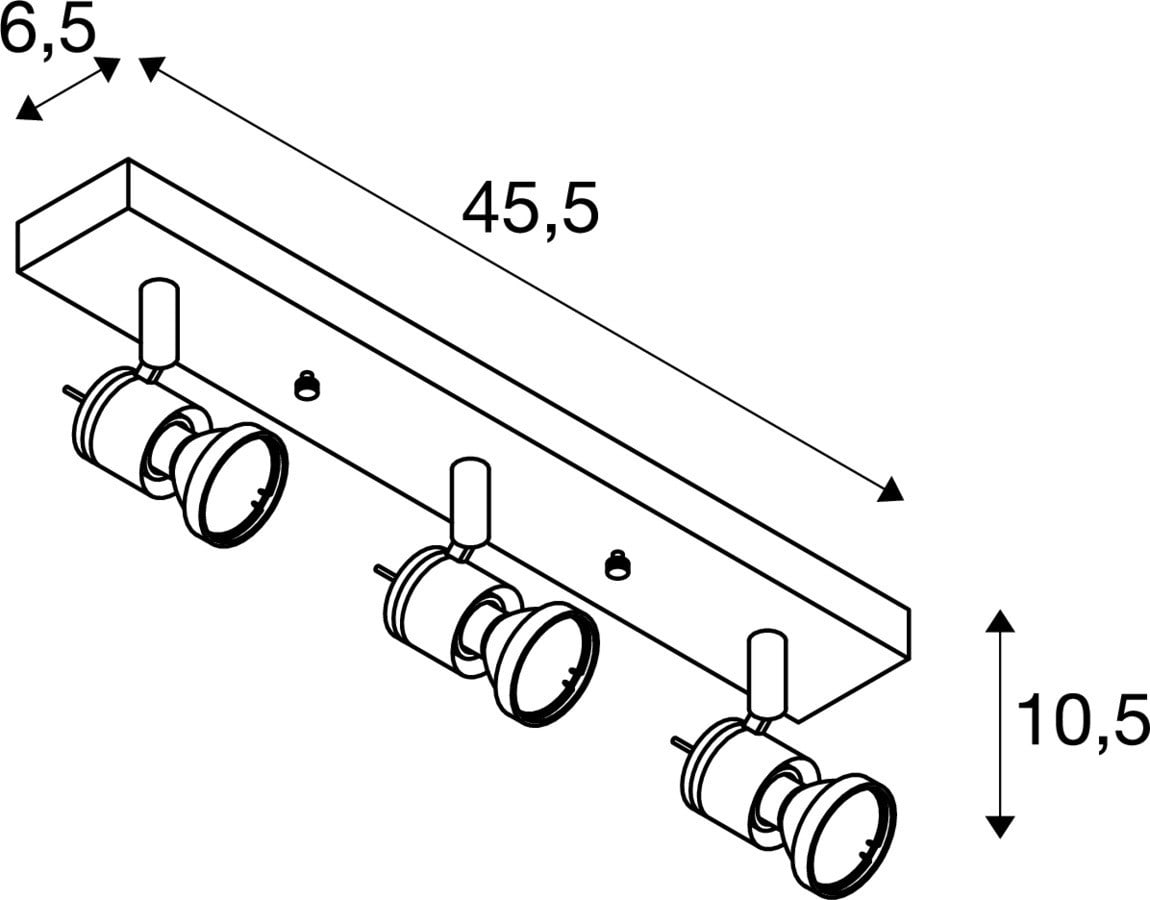 Intérieur applique murale ou de plafond. Matériau principal: Aluminium, Couleur: aluminium, Culot: GU10, Form: rond, Puissance assignée: 75 W, Classe de protection (EN 61140): I, Indice de protection (DIN EN 60529): IP20, donc Protection contre les corps étrangers solides d'un diamètre supérieur à 12,5 mm, Tension d'alimentation: 220-240V ~50/60 Hz, Dimension (L/W/H): ( 45.5 / 6.5 / 10.5 cm ), Poids: 0.625 kg. Le produit répond aux exigences essentielles des directives européennes applicables et de la loi sur la sécurité des produits et porte le marquage CE.SLV Référence 147443 / EAN 4024163104449