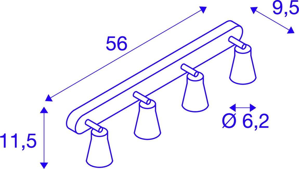 Intérieur applique murale ou de plafond. Matériau principal: Acier, Couleur: blanc, Culot: GU10, Form: autre, Puissance assignée: 50 W, Classe de protection (EN 61140): I, Indice de protection (DIN EN 60529): IP20, donc Protection contre les corps étrangers solides d'un diamètre supérieur à 12,5 mm, Tension d'alimentation: 230V ~50Hz, Dimension (L/W/H): ( 56 / 11.5 / 9.5 cm ), Poids: 1.068 kg. Le produit répond aux exigences essentielles des directives européennes applicables et de la loi sur la sécurité des produits et porte le marquage CE.SLV Référence 1000896 / EAN 4024163191883