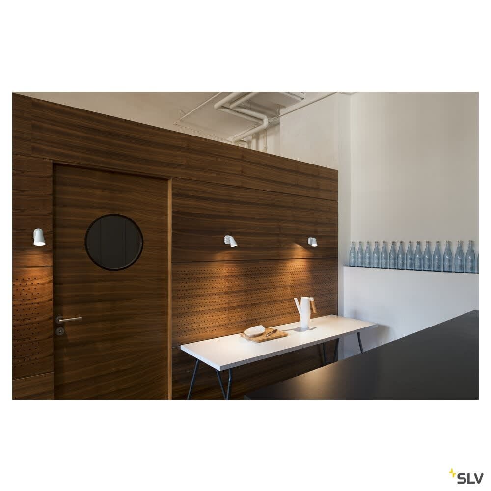 Intérieur applique murale ou de plafond. Matériau principal: Acier, Couleur: noir, Culot: GU10, Form: autre, Puissance assignée: 50 W, Classe de protection (EN 61140): I, Indice de protection (DIN EN 60529): IP20, donc Protection contre les corps étrangers solides d'un diamètre > 12,5mm, Tension d'alimentation: 230V ~50Hz, Dimension (L/W/H): ( 8 / 11.5 / 9.5 cm ), Poids: 0.244 kg. Le produit répond aux exigences essentielles des directives européennes applicables et de la loi sur la sécurité des produits et porte le marquage CE.SLV Référence 1000886 / EAN 4024163191784