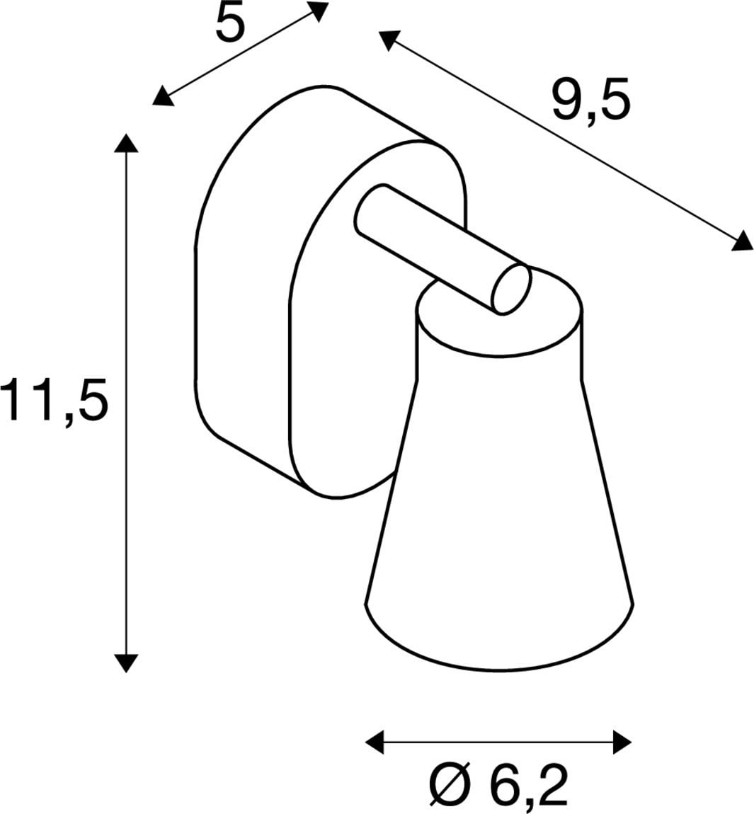 Intérieur applique murale ou de plafond. Matériau principal: Acier, Couleur: noir, Culot: GU10, Form: autre, Puissance assignée: 50 W, Classe de protection (EN 61140): I, Indice de protection (DIN EN 60529): IP20, donc Protection contre les corps étrangers solides d'un diamètre > 12,5mm, Tension d'alimentation: 230V ~50Hz, Dimension (L/W/H): ( 8 / 11.5 / 9.5 cm ), Poids: 0.244 kg. Le produit répond aux exigences essentielles des directives européennes applicables et de la loi sur la sécurité des produits et porte le marquage CE.SLV Référence 1000886 / EAN 4024163191784