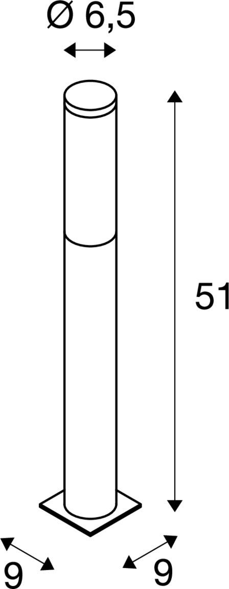 Extérieur lampadaires. Matériau principal: Inox 304 et polycarbonate (PC), Couleur: inox, Culot: E27, Form: cylindrique, Puissance assignée: 15 W, Classe de protection (EN 61140): I, Indice de protection (DIN EN 60529): IP44, donc protection contre les corps étrangers solides > 1mm et protection contre les projections d'eau de tous les côtés, Tension d'alimentation: 230V ~50Hz, Diamètre du luminaire: 6.5 cm, Dimension (L/W/H): ( 6.5 / 6.5 / 51 cm ), Poids: 1.049 kg. Le produit répond aux exigences essentielles des directives européennes applicables et de la loi sur la sécurité des produits et porte le marquage CE.SLV Référence 229162 / EAN 4024163098373