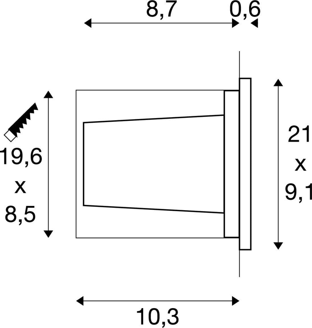 Extérieur encastré mural avec corps lumineux LED fixe. Matériau principal: Aluminium et Inox 316, Couleur: inox, Form: rectangulaire, Puissance assignée: 9.5 W, Flux lumineux assigné: 950 lm, Température de couleur (CCT): 3000K, Indice général de rendu des couleurs (IRC) Ra: 80, Maintien du flux lumineux: L70B50 ≥ 25000 h, Classe de protection (EN 61140): I, Indice de protection (DIN EN 60529): IP65, donc protection contre les infiltrations de poussière et protection contre les jets d'eau de toutes directions, Degré de résistance aux chocs selon IEC 62262: IK02, Tension d'alimentation: 220-240V ~50/60Hz sek. 700mA, Dimension (L/W/H): ( 21 / 9.1 / 9.3 cm ), Poids: 1.823 kg. Le produit répond aux exigences essentielles des directives européennes applicables et de la loi sur la sécurité des produits et porte le marquage CE.SLV Référence 233650 / EAN 4024163164467