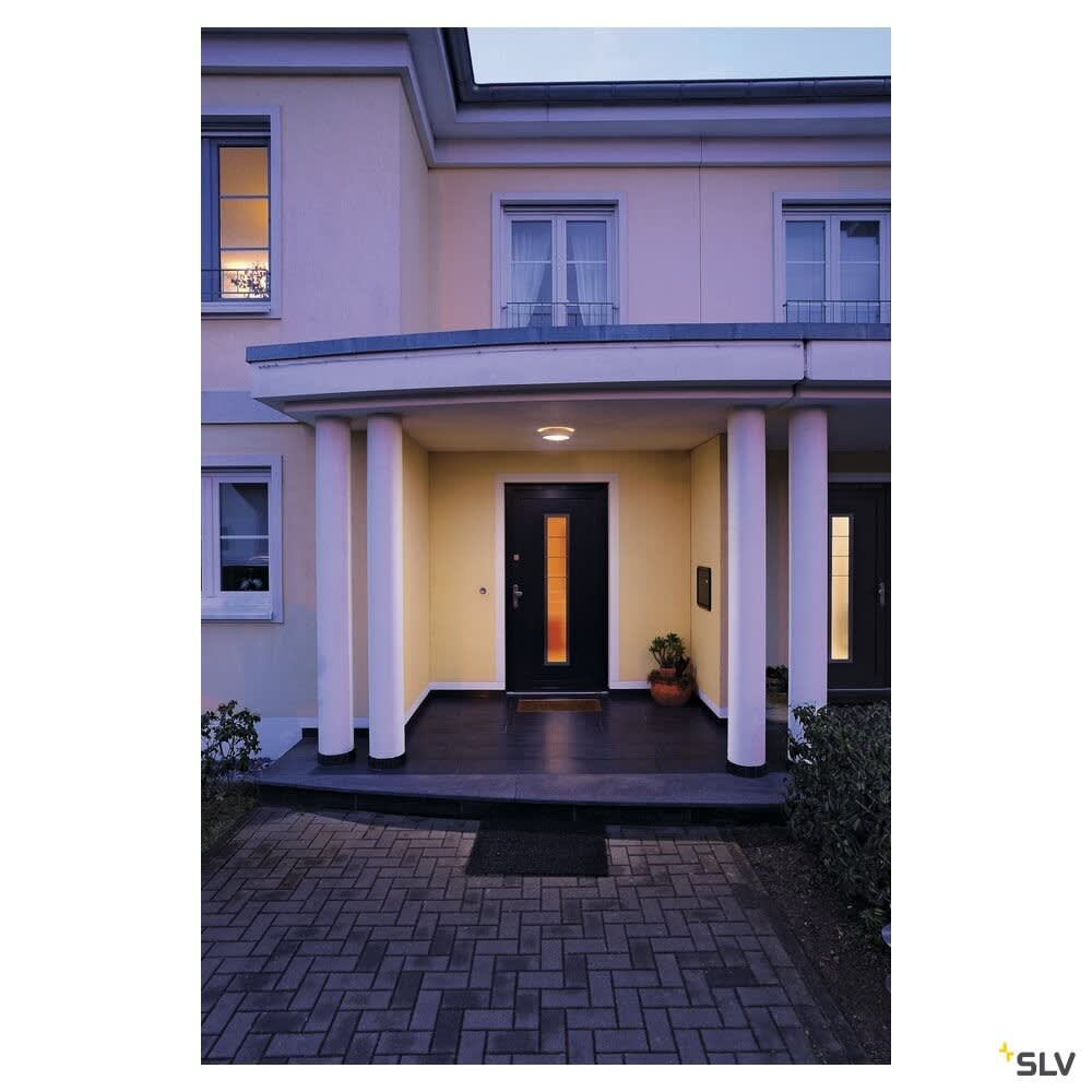 Extérieur applique murale ou de plafond. Matériau principal: Aluminium et Verre, Couleur: blanc, Culot: E14, Form: rond, Puissance assignée: 60 W, Classe de protection (EN 61140): I, Indice de protection (DIN EN 60529): IP44, donc protection contre les corps étrangers solides > 1mm et protection contre les projections d'eau de toutes les directions, Degré de résistance aux chocs selon IEC 62262: IK02, Tension d'alimentation: 230V ~50Hz, Diamètre du luminaire: 27 cm, Dimension (L/W/H): ( 27 / 27 / 7 cm ), Poids: 1.527 kg. Le produit répond aux exigences essentielles des directives européennes applicables et de la loi sur la sécurité des produits et porte le marquage CE.SLV Référence 229071 / EAN 4024163102490