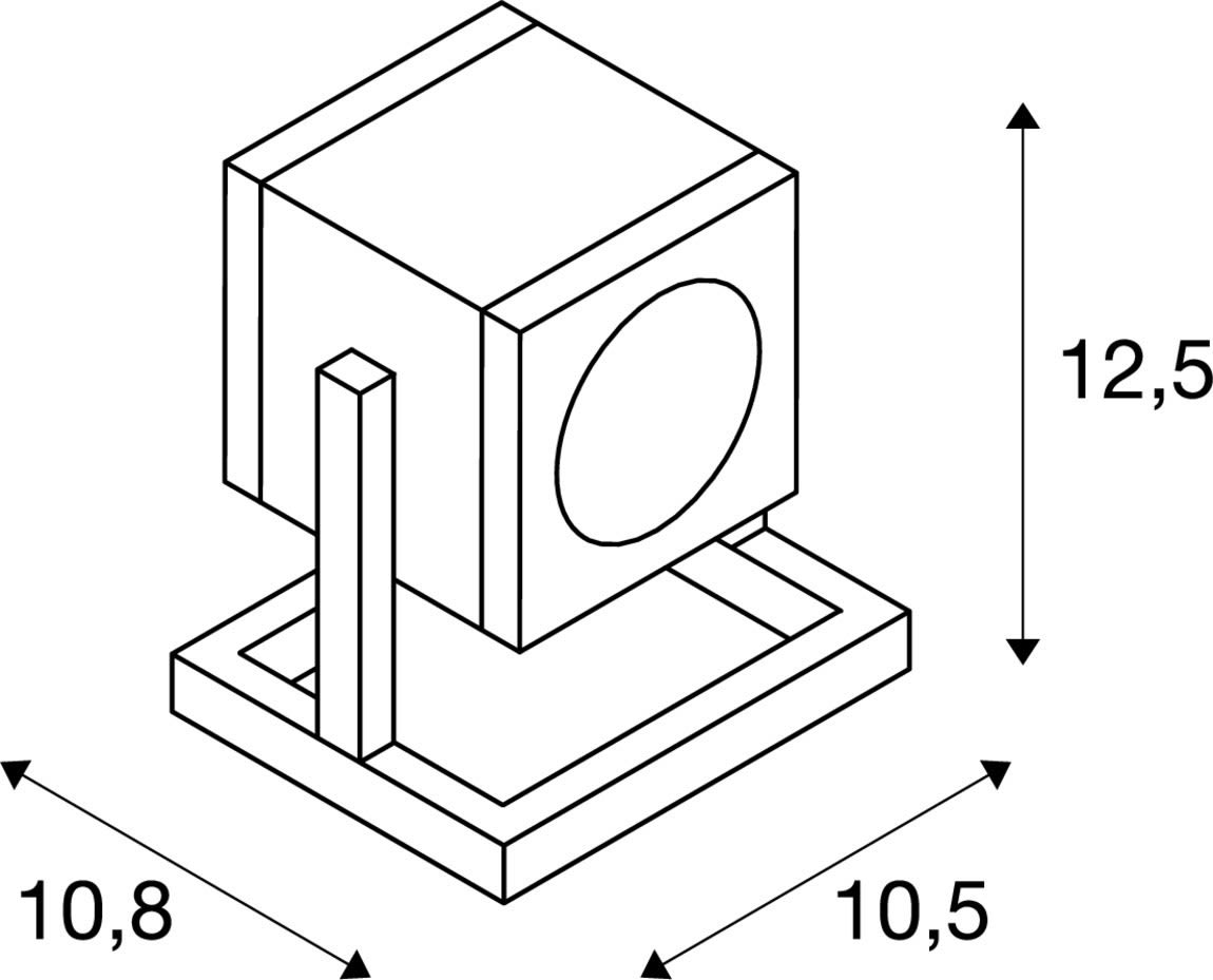 Extérieur lampadaires. Matériau principal: Aluminium et Verre, Couleur: anthracite, Culot: GU10, Form: rectangulaire, Puissance assignée: 25 W, Classe de protection (EN 61140): I, Indice de protection (DIN EN 60529): IP44, donc protection contre les corps étrangers solides > 1mm et protection contre les projections d'eau de toutes directions, Degré de résistance aux chocs selon IEC 62262: IK04, Tension d'alimentation: 230V ~50Hz, Dimension (L/W/H): ( 10.8 / 10.5 / 12.5 cm ), Poids: 0.766 kg. Le produit répond aux exigences essentielles des directives européennes applicables et de la loi sur la sécurité des produits et porte le marquage CE.SLV Référence 132835 / EAN 4024163159814