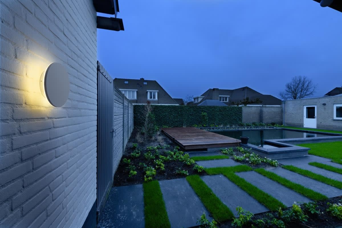 La nouvelle famille D-RING s'empare avec élégance de la tendance actuelle aux formes organiques. Sa lumière blanc chaud (2700 K / 3000 K) indirecte, variable et réglable par interrupteur CCT met discrètement en scène les façades, sans éblouir. Ses deux diamètres disponibles offrent une grande liberté conceptuelle. Grâce au traitement spécial de leur surface, ces luminaires peuvent s'utiliser sans problème en bord de mer.