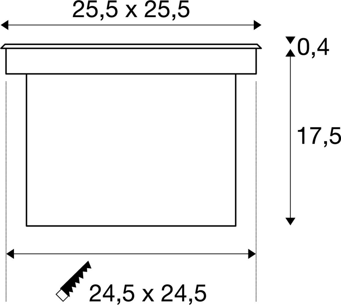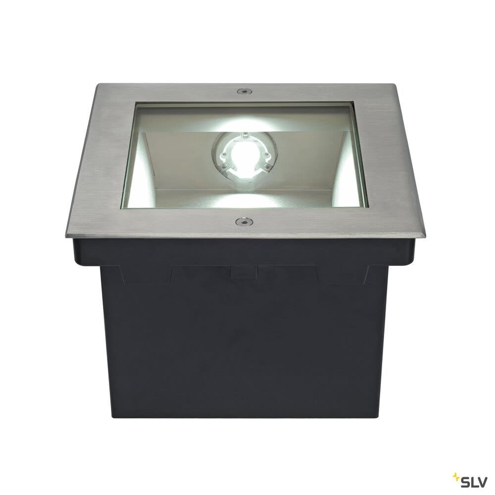 Extérieur encastré de sol avec corps lumineux LED fixe. Matériau principal: Inox 316 et Verre, Couleur: inox, Form: rectangulaire, Puissance assignée: 31 W, Flux lumineux assigné: 1720 lm, Température de couleur (CCT): 4000K, Indice général de rendu des couleurs (IRC) Ra: 90, Maintien du flux lumineux: L70B50 ≥ 50000 h, Classe de protection (EN 61140): I, Indice de protection (DIN EN 60529): IP65/IP67, donc protection contre l'intrusion de la poussière et protection contre les jets d'eau de toutes les directions / protection contre l'intrusion de la poussière, Degré de résistance aux chocs selon IEC 62262: IK08, Tension d'alimentation: 220-240V ~50/60Hz sek. 750mA, Dimension (L/W/H): ( 25.5 / 25.5 / 14.5 cm ), Poids: 5.997 kg. Le produit répond aux exigences essentielles des directives européennes applicables et de la loi sur la sécurité des produits et porte le marquage CE.SLV Référence 229381 / EAN 4024163159197