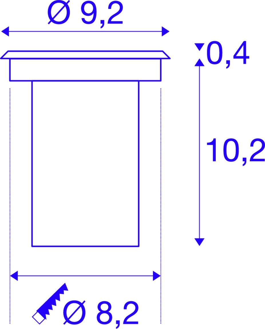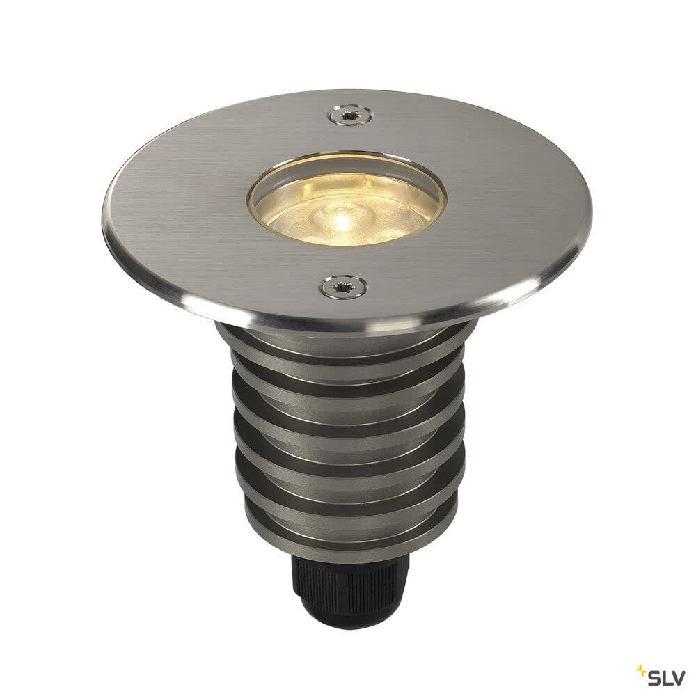 Extérieur encastré de sol avec corps lumineux LED fixe. Matériau principal: Inox 316 et Verre, Couleur: inox, Form: rond, Puissance assignée: 5.5 W, Flux lumineux assigné: 300 lm, Température de couleur (CCT): 3000K, Indice général de rendu des couleurs (IRC) Ra: 80, Maintien du flux lumineux: L70B50 ≥ 25000 h, Classe de protection (EN 61140): I, Indice de protection (DIN EN 60529): IP67, donc protection contre la pénétration de la poussière et protection contre l'immersion temporaire dans l'eau, Degré de résistance aux chocs selon IEC 62262: IK08, Tension d'alimentation: 220-240V ~50/60Hz sek. 400mA, Diamètre du luminaire: 9.2 cm, Diamètre de la découpe: 8.2 cm, Dimension (L/W/H): ( 9.4 / 9.2 / 9.2 cm ), Poids: 0.707 kg. Le produit répond aux exigences essentielles des directives européennes applicables et de la loi sur la sécurité des produits et porte le marquage CE.SLV Référence 233520 / EAN 4024163145527