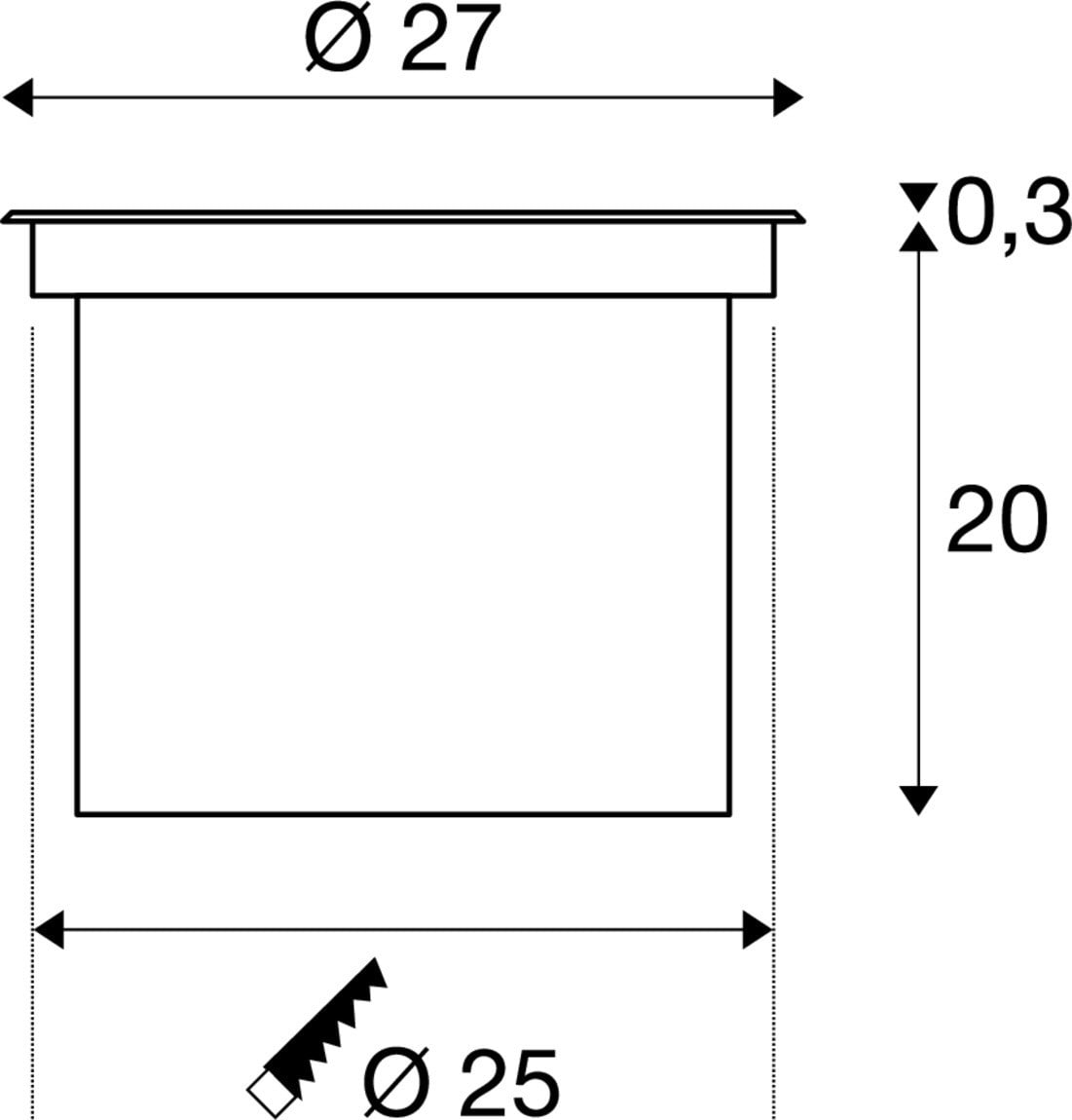 Extérieur encastré de sol avec corps lumineux LED fixe. Matériau principal: Aluminium et Inox 316, Couleur: noir, Form: rond, Puissance assignée: 30 W, Flux lumineux assigné: 2500 lm, Température de couleur (CCT): 3000K, Indice général de rendu des couleurs (IRC) Ra: 80, Maintien du flux lumineux: L70B50 ≥ 50000 h, Classe de protection (EN 61140): I, Indice de protection (DIN EN 60529): IP67, donc protection contre l'intrusion de poussière et protection contre les jets d'eau de toutes directions / protection contre l'intrusion de poussière, Degré de résistance aux chocs selon IEC 62262: IK08, Tension d'alimentation: 220-240V ~50/60 Hz, Diamètre du luminaire: 27 cm, Diamètre de la découpe: 25 cm, Dimension (L/W/H): ( 27 / 27 / 20.3 cm ), Poids: 5.917 kg. Le produit répond aux exigences essentielles des directives européennes applicables et de la loi sur la sécurité des produits et porte le marquage CE.SLV Référence 1002897 / EAN 4024163230919