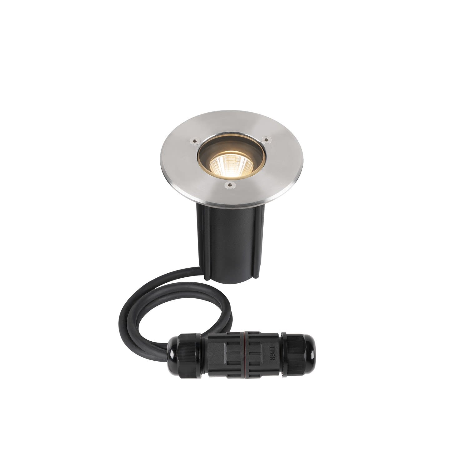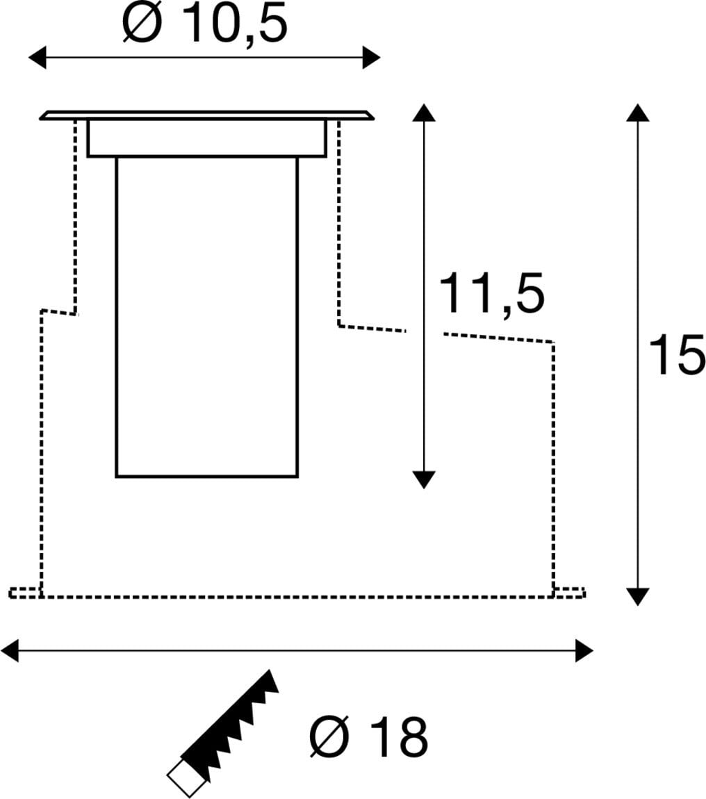 Extérieur encastré de sol avec corps lumineux LED fixe. Matériau principal: aluminium, Couleur: inox, Form: cylindrique, Puissance assignée: 4 W, Flux lumineux assigné: 350 lm, Température de couleur (CCT): 3000K, Indice général de rendu des couleurs (IRC) Ra: 80, Maintien du flux lumineux: L80B50 ≥ 50000 h, Classe de protection (EN 61140): I, Indice de protection (DIN EN 60529): IP67, donc Protection contre la pénétration de la poussière et Protection contre l'infiltration d'eau en cas d'immersion temporaire, Degré de résistance aux chocs selon IEC 62262: IK10, Tension d'alimentation: 220-240V ~50/60 Hz, Diamètre du luminaire: 10.5 cm, Diamètre de la découpe: 18 cm, Dimension (L/W/H): ( 11.5 / 10.5 / 10.5 cm ), Poids: 0.656 kg. Le produit répond aux exigences essentielles des directives européennes applicables et de la loi sur la sécurité des produits et porte le marquage CE.SLV Référence 1007680 / EAN 4024163288217