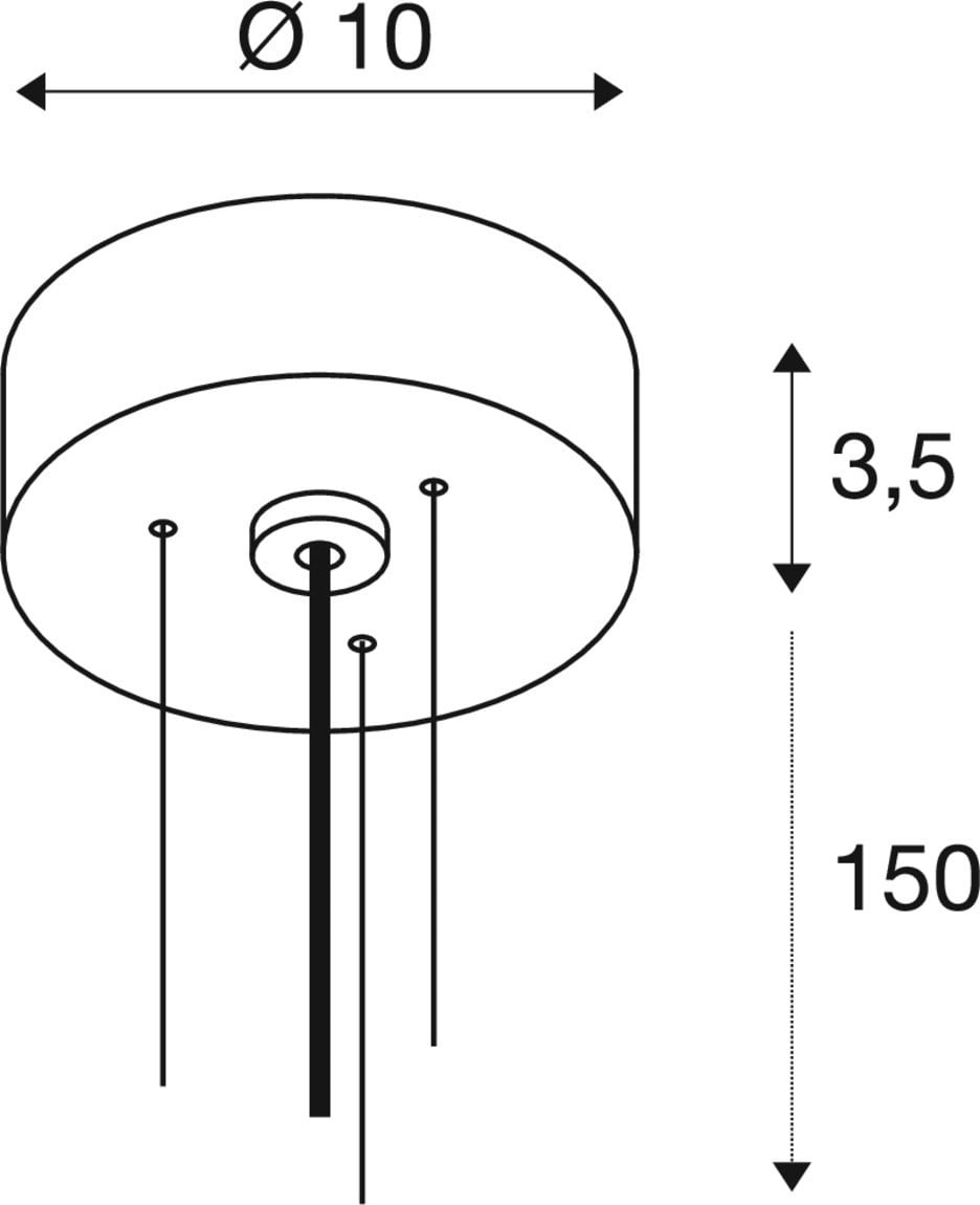 Kit de suspension. Matériau principal: acier, Couleur: noir, Form: rond, Degré de résistance aux chocs selon IEC 62262: IK06, Tension d'alimentation: 220-240V ~50/60 Hz, Diamètre du baldaquin: 10 cm, Poids: 0.38 kg. Le produit répond aux exigences essentielles des directives européennes applicables et de la loi sur la sécurité des produits et porte le marquage CE.SLV Référence 1008587 / EAN 4024163298124