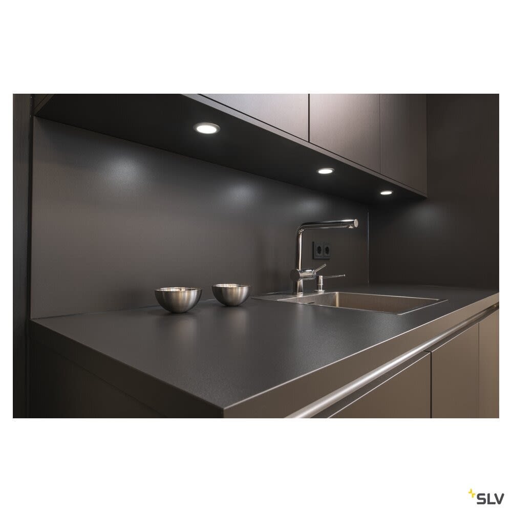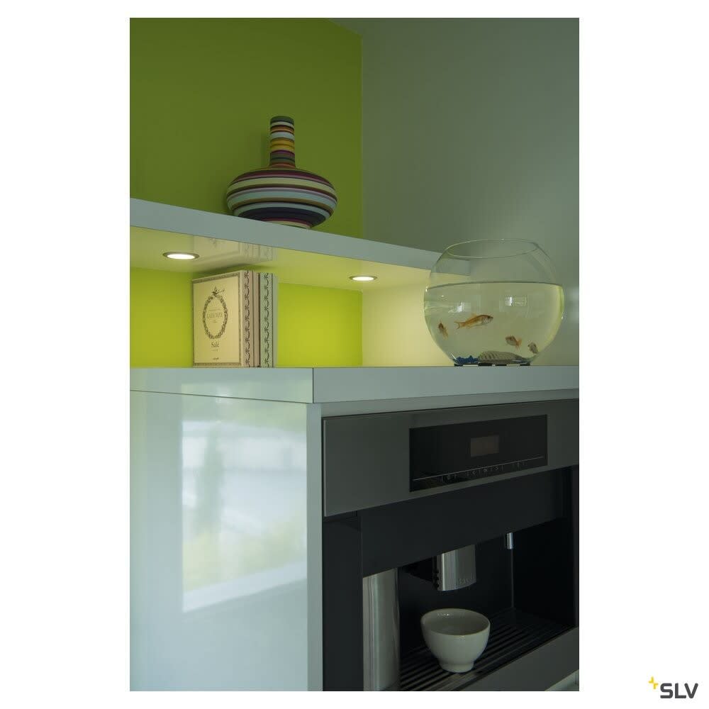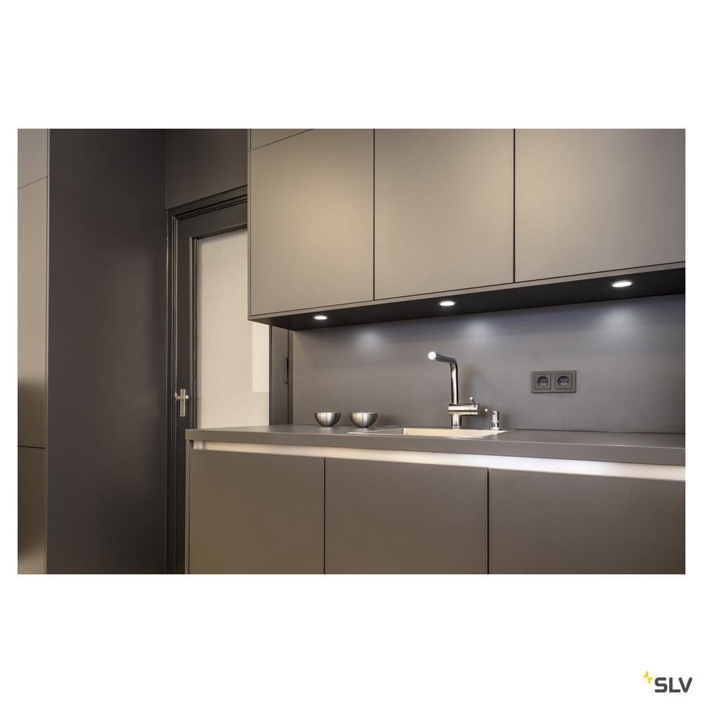 Intérieur plafonnier encastré avec corps lumineux LED fixe. Matériau principal: Aluminium et plastique, Couleur: gris, Form: rond, Puissance assignée: 2.8 W, Flux lumineux assigné: 170 lm, Température de couleur (CCT): 3000K, Indice général de rendu des couleurs (IRC) Ra: 80, Maintien du flux lumineux: L70B50 ≥ 60000 h, Classe de protection (EN 61140): III, Indice de protection (DIN EN 60529): IP20, donc Protection contre les corps étrangers solides d'un diamètre supérieur à 12,5 mm, Tension d'alimentation: 12V DC, Diamètre du luminaire: 6.5 cm, Diamètre de la découpe: 5.7 cm, Dimension (L/W/H): ( 6.5 / 6.5 / 1.6 cm ), Poids: 0.122 kg. Le produit répond aux exigences essentielles des directives européennes applicables et de la loi sur la sécurité des produits et porte le marquage CE.SLV Référence 112225 / EAN 4024163168809