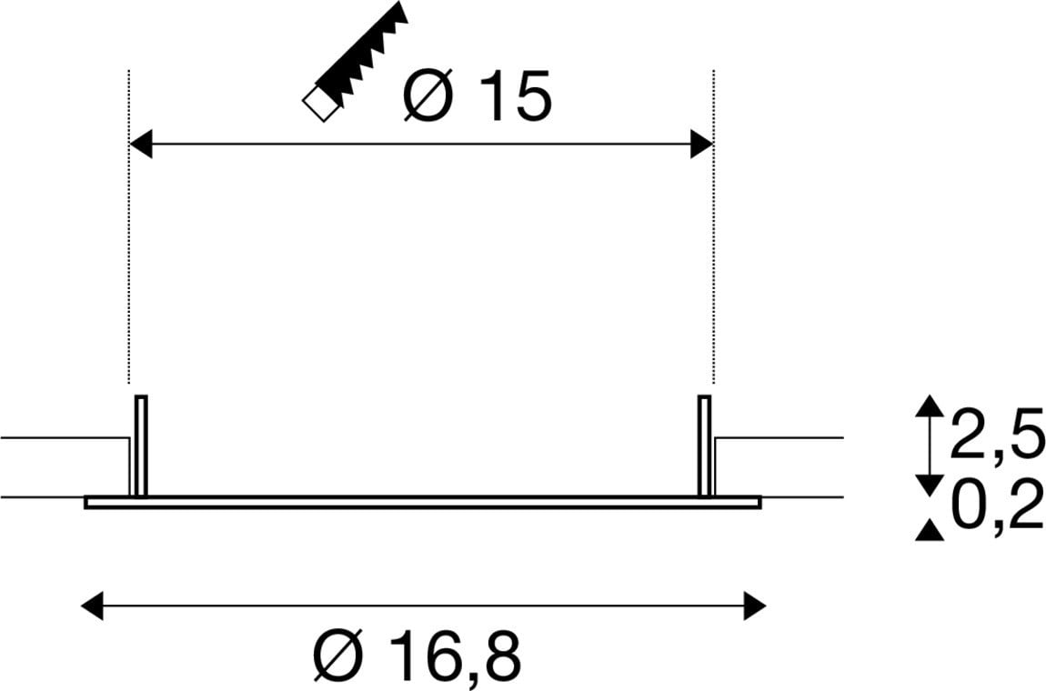 Plafonnier encastré. Matériau principal: polycarbonate (PC), Couleur: noir, Diamètre du luminaire: 16.8 cm, Diamètre de la découpe: 15 cm, Dimension (L/W/H): ( 16.8 / 16.8 / 2.5 cm ), Poids: 0.05 kg.SLV Référence 1007481 / EAN 4024163278409