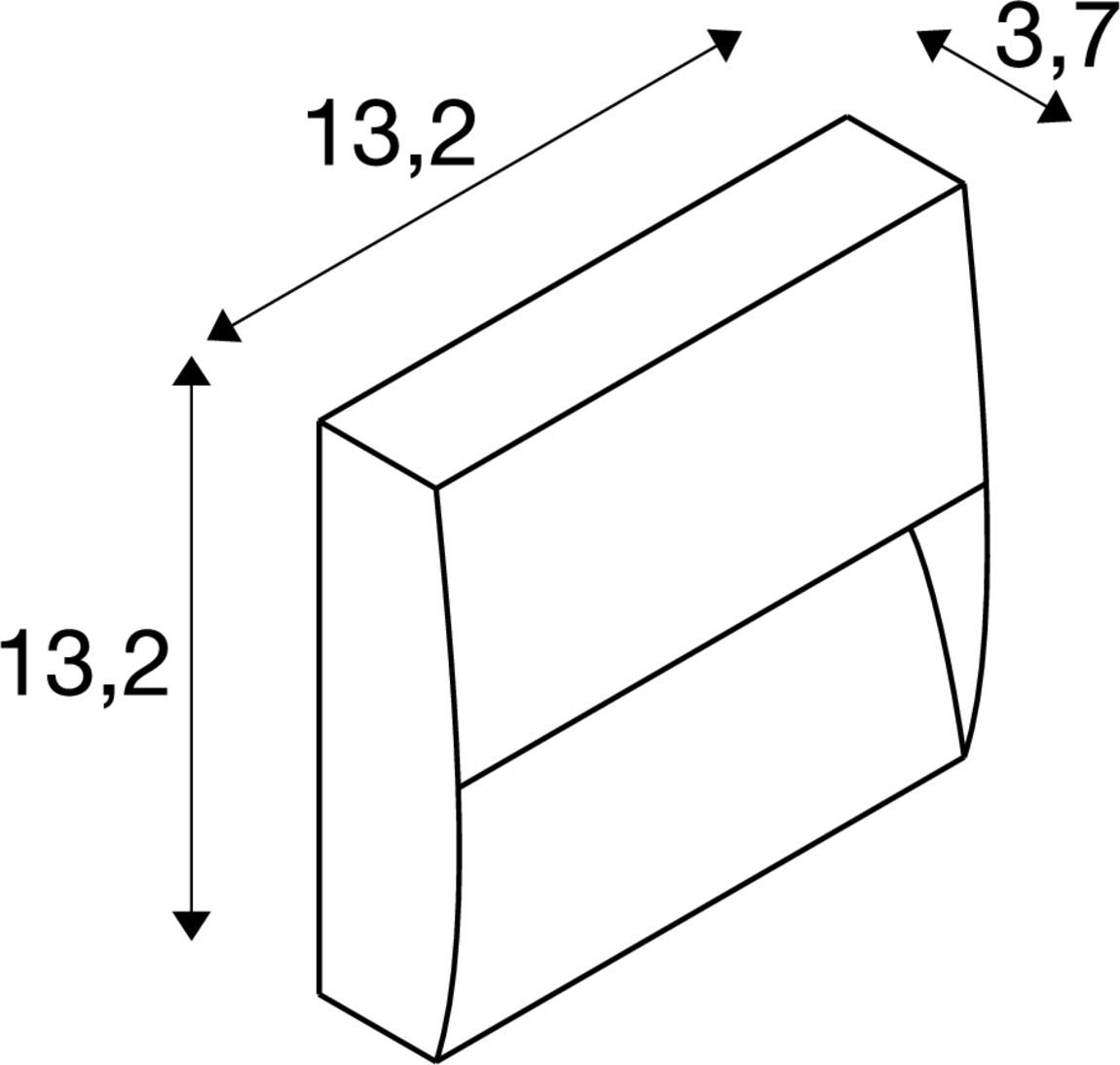 Extérieur appliques avec corps lumineux LED fixe. Matériau principal: Aluminium, Couleur: anthracite, Form: rectangulaire, Puissance assignée: 4.3 W, Flux lumineux assigné: 150 / 160 lm, Température de couleur (CCT): 3000/4000K, Indice général de rendu des couleurs (IRC) Ra: 80, Maintien du flux lumineux: L70B50 ≥ 30000 h, Classe de protection (EN 61140): I, Indice de protection (DIN EN 60529): IP65, donc protection contre l'intrusion de la poussière et protection contre les jets d'eau de toutes directions, Degré de résistance aux chocs selon IEC 62262: IK02, Tension d'alimentation: 100-240V ~50/60 Hz, Dimension (L/W/H): ( 3.7 / 13.2 / 13.2 cm ), Poids: 0.49 kg. Le produit répond aux exigences essentielles des directives européennes applicables et de la loi sur la sécurité des produits et porte le marquage CE.SLV Référence 1002869 / EAN 4024163230650