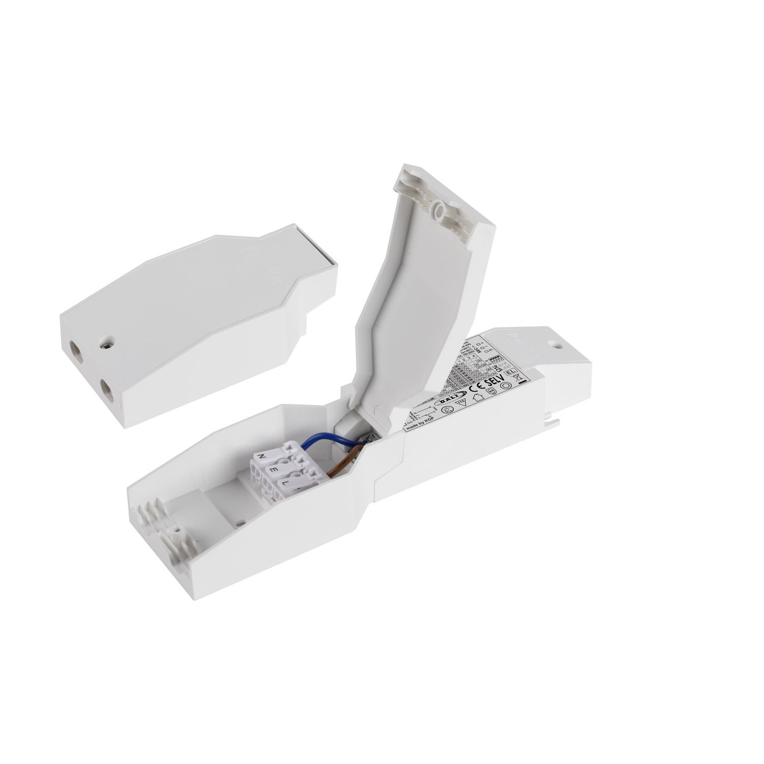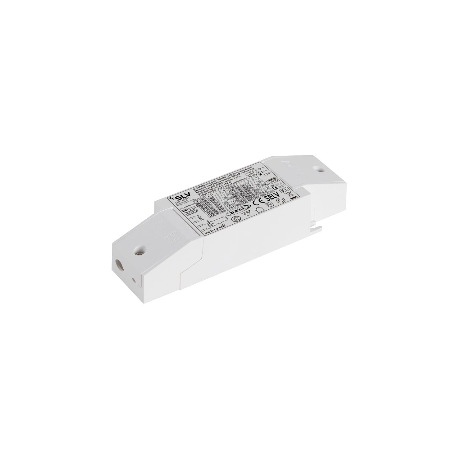 Pilote de LED. Matériau principal: plastique PC, Couleur: blanc, Dimmable: DALI 2,Touch, Puissance assignée: 59.7 W, Classe de protection (EN 61140): II, Indice de protection (DIN EN 60529): IP20, Tension d'alimentation: 220-240V ~0/50/60 Hz, Poids: 0.165 kg. Le produit répond aux exigences essentielles des directives européennes applicables et de la loi sur la sécurité des produits et porte le marquage CE.SLV Référence 1008669 / EAN 4024163297301