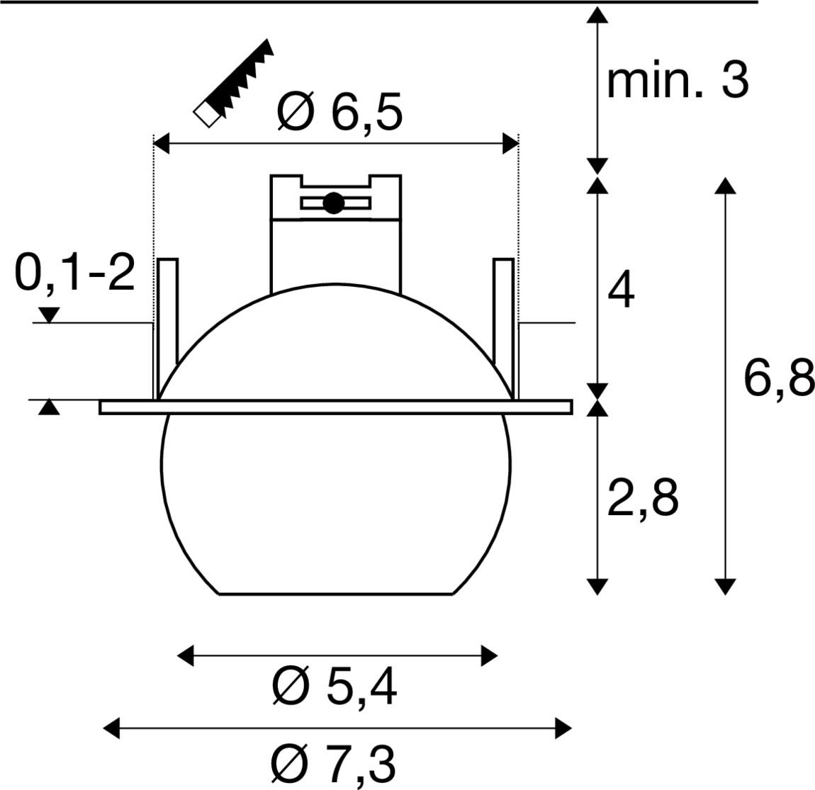 Intérieur plafonnier encastré avec corps lumineux LED fixe. Matériau principal: aluminium et aluminium, Couleur: noir et or, Dimmable: Variateur en fin de phase, Puissance assignée: 6.4 W, Flux lumineux assigné: 750 lm, Température de couleur (CCT): 2700K, Indice général de rendu des couleurs (IRC) Ra: 90, Maintien du flux lumineux: L80B10 ≥ 50000 h, Classe de protection (EN 61140): II, Indice de protection (DIN EN 60529): IP20, Degré de résistance aux chocs selon IEC 62262: IK02, Tension d'alimentation: 220-240V ~50/60 Hz, Diamètre du luminaire: 7.3 cm, Diamètre de la découpe: 6.5 cm, Dimension (L/W/H): ( 7.3 / 7.3 / 6.8 cm ), Poids: 0.28 kg. Le produit répond aux exigences essentielles des directives européennes applicables et de la loi sur la sécurité des produits et porte le marquage CE.SLV Référence 1010353 / EAN 4024163316712