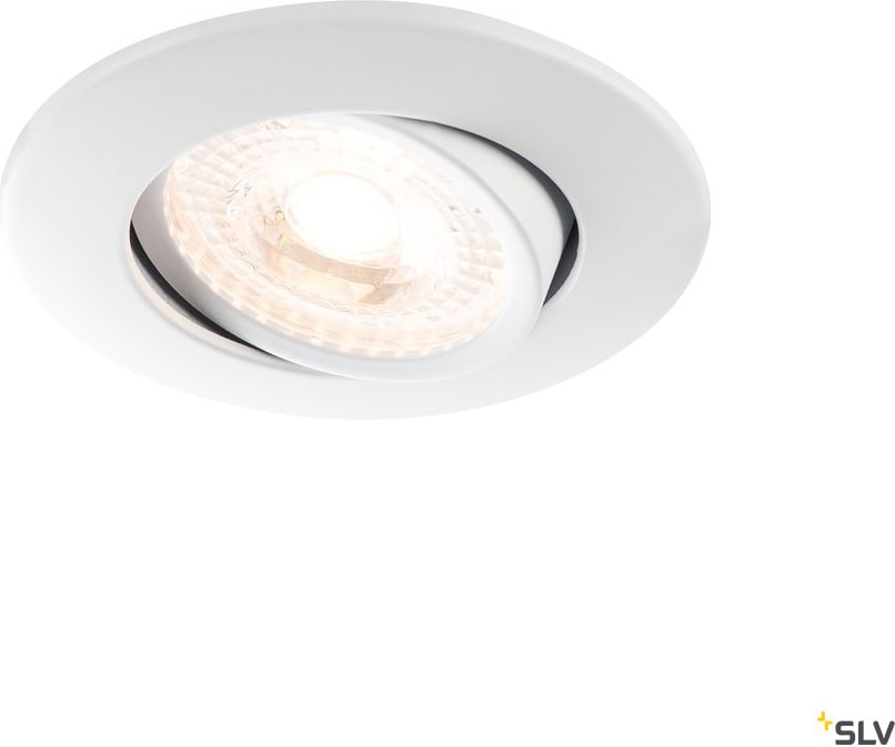 Intérieur plafonnier encastré avec corps lumineux LED fixe. Matériau principal: Aluminium et plastique, Couleur: blanc, Form: rond, Tension d'alimentation: 220-240V ~50/60Hz, Poids: 0.213 kg. Le produit répond aux exigences essentielles des directives européennes applicables et de la loi sur la sécurité des produits et porte le marquage CE.SLV Référence 1001005 / EAN 4024163192897