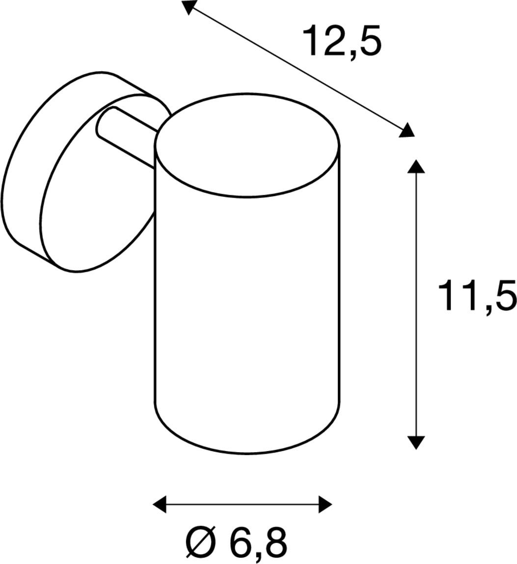 Intérieur appliques. Matériau principal: Aluminium et Acier, Couleur: noir, Culot: GU10, Form: cylindrique, Puissance assignée: 50 W, Classe de protection (EN 61140): I, Indice de protection (DIN EN 60529): IP20, donc Protection contre les corps étrangers solides d'un diamètre supérieur à 12,5 mm, Tension d'alimentation: 230V ~50Hz, Diamètre du baldaquin: 9 cm, Dimension (L/W/H): ( 13 / 9 / 11.4 cm ), Poids: 0.47 kg. Le produit répond aux exigences essentielles des directives européennes applicables et de la loi sur la sécurité des produits et porte le marquage CE.SLV Référence 1000729 / EAN 4024163190213