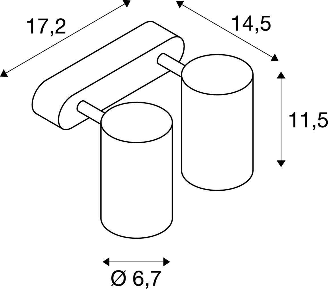 Intérieur applique murale ou de plafond. Matériau principal: Aluminium et Acier, Couleur: noir, Culot: GU10, Form: cylindrique, Puissance assignée: 50 W, Classe de protection (EN 61140): I, Indice de protection (DIN EN 60529): IP20, donc Protection contre les corps étrangers solides d'un diamètre > 12.5mm, Tension d'alimentation: 230V ~50Hz, Diamètre du luminaire: 6.7 cm, Dimension (L/W/H): ( 12 / 6.7 / 14.5 cm ), Poids: 0.925 kg. Le produit répond aux exigences essentielles des directives européennes applicables et de la loi sur la sécurité des produits et porte le marquage CE.SLV Référence 152020 / EAN 4024163149990