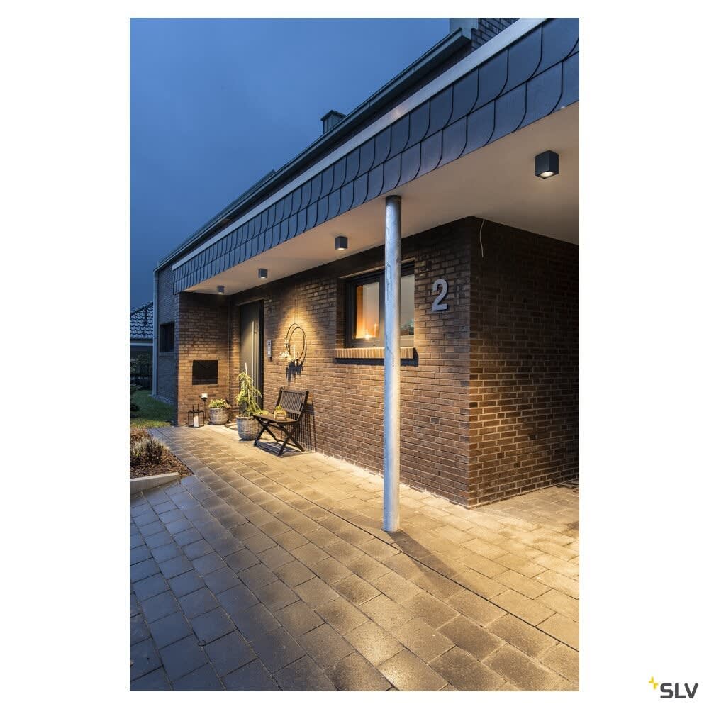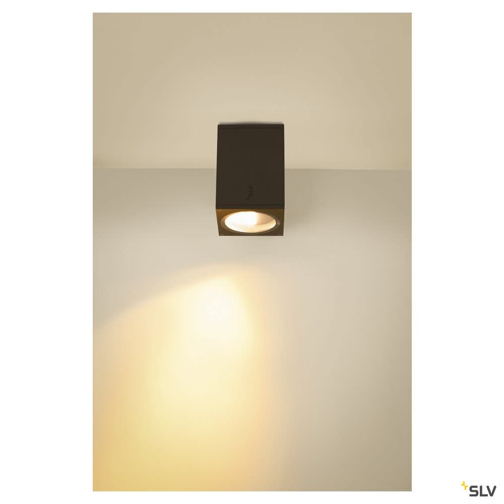 Extérieur plafonniers avec corps lumineux LED fixe. Matériau principal: Aluminium et Verre, Couleur: anthracite, Form: rectangulaire, Puissance assignée: 11 W, Flux lumineux assigné: 840 / 960 lm, Température de couleur (CCT): 3000/4000K, Indice général de rendu des couleurs (IRC) Ra: 90, Maintien du flux lumineux: L70B50 ≥ 30000 h, Classe de protection (EN 61140): I, Indice de protection (DIN EN 60529): IP65, donc protection contre l'intrusion de la poussière et protection contre les jets d'eau de toutes directions, Degré de résistance aux chocs selon IEC 62262: IK06, Tension d'alimentation: 220-240V ~50/60 Hz, Dimension (L/W/H): ( 10 / 10 / 12.5 cm ), Poids: 0.819 kg. Le produit répond aux exigences essentielles des directives européennes applicables et de la loi sur la sécurité des produits et porte le marquage CE.SLV Référence 1003421 / EAN 4024163235785