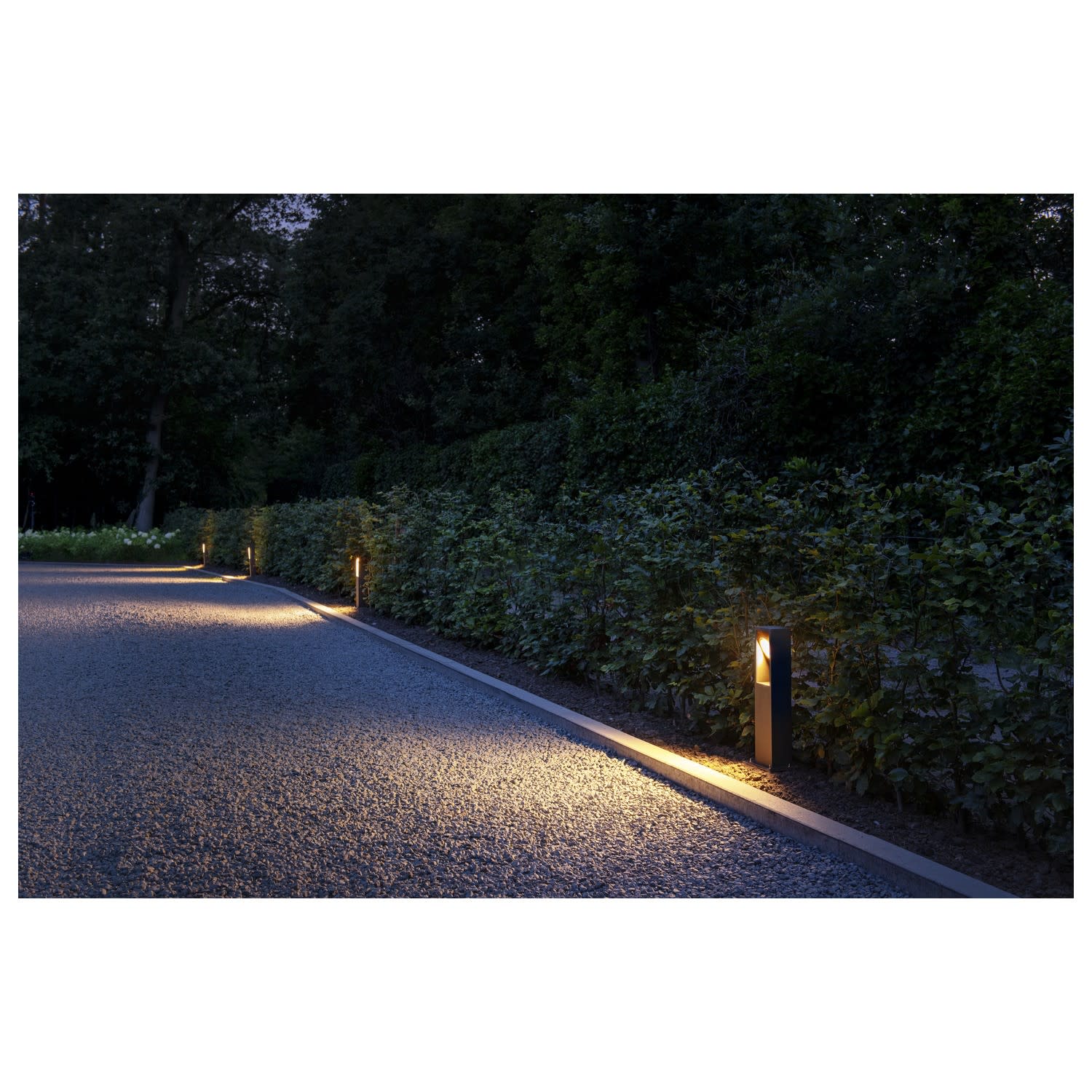 Extérieur lampadaires avec corps lumineux LED fixe. Matériau principal: Aluminium, Couleur: anthracite, Dimmable: Variateur en début de phase,Variateur en fin de phase, Puissance assignée: 15 W, Flux lumineux assigné: 1100 / 1200 lm, Température de couleur (CCT): 3000/4000K, Indice général de rendu des couleurs (IRC) Ra: 80, Maintien du flux lumineux: L70B50 ≥ 30000 h, Classe de protection (EN 61140): I, Indice de protection (DIN EN 60529): IP65, donc protection contre l'intrusion de poussière et protection contre les jets d'eau de toutes directions, Degré de résistance aux chocs selon IEC 62262: IK06, Tension d'alimentation: 220-240V ~50/60 Hz, Dimension (L/W/H): ( 11.5 / 7.3 / 45 cm ), Poids: 2.206 kg. Le produit répond aux exigences essentielles des directives européennes applicables et de la loi sur la sécurité des produits et porte le marquage CE.SLV Référence 1004749 / EAN 4024163248990