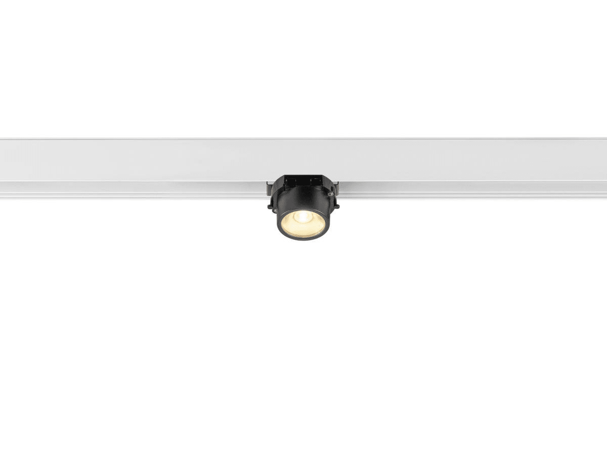 La gamme FIXT-IT! de SLV propose des spots LED 48V pour rails, au design compact et élégant, avec inserts décoratifs interchangeables (ronds ou carrés) en noir, blanc, or ou bronze. Dimmables (DALI, Dim-to-Warm), UGR<11, 2700K/3000K, IP20, pour un éclairage intérieur personnalisé. (SLV, LTT-Versand.de)