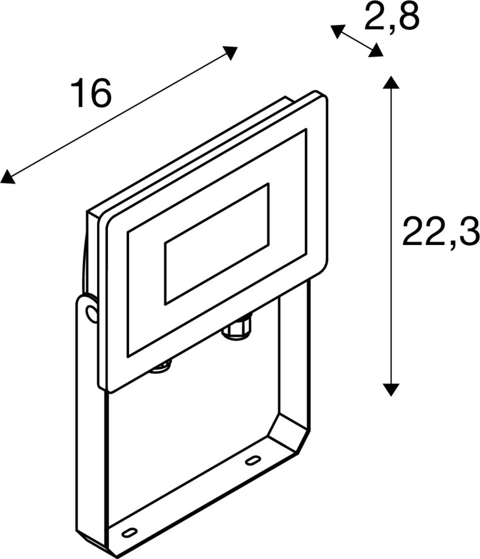 Extérieur applique murale ou de plafond avec corps lumineux LED fixe. Matériau principal: Aluminium, Couleur: anthracite, Form: rectangulaire, Puissance assignée: 30 W, Flux lumineux assigné: 2980 lm, Température de couleur (CCT): 3000K, Indice général de rendu des couleurs (IRC) Ra: 80, Maintien du flux lumineux: L70B50 ≥ 50000 h, Classe de protection (EN 61140): I, Indice de protection (DIN EN 60529): IP65, Degré de résistance aux chocs selon IEC 62262: IK06, Tension d'alimentation: 220-240V ~50/60 Hz, Dimension (L/W/H): ( 16 / 2.8 / 22.3 cm ), Poids: 0.549 kg. Le produit répond aux exigences essentielles des directives européennes applicables et de la loi sur la sécurité des produits et porte le marquage CE.SLV Référence 1006192 / EAN 4024163262613
