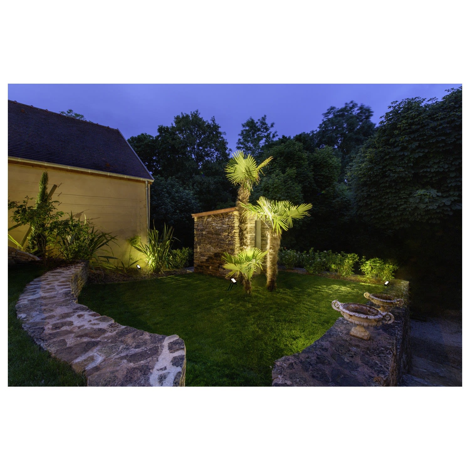 Projecteur puissant FLOODI pour un éclairage efficace des surfaces et des lieux. Grâce au support inclinable ainsi que la classe de protection IP65, le projecteur convient à un montage extérieur au mur, au plafond ou au sol. Le raccordement électrique du projecteur se fait par le driver et le câble fournis directement sur la tension nominale 230V du secteur. Pour plus de sécurité à l'extérieur : le détecteur de mouvement pour la série de lampes FLOODI.