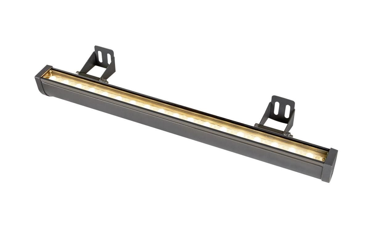 Extérieur profils LED avec corps lumineux LED fixe. Matériau principal: Aluminium et Verre, Couleur: anthracite, Puissance assignée: 18 W, Flux lumineux assigné: 1570 / 1570 lm, Température de couleur (CCT): 3000/4000K, Indice général de rendu des couleurs (IRC) Ra: 80, Maintien du flux lumineux: L70B50 ≥ 54000 h, Classe de protection (EN 61140): I, Indice de protection (DIN EN 60529): IP65, donc protection contre l'intrusion de la poussière et protection contre les jets d'eau de toutes directions, Degré de résistance aux chocs selon IEC 62262: IK03, Tension d'alimentation: 220-240V ~50/60 Hz, Dimension (L/W/H): ( 11.3 / 60 / 6.2 cm ), Poids: 1.684 kg. Le produit répond aux exigences essentielles des directives européennes applicables et de la loi sur la sécurité des produits et porte le marquage CE.SLV Référence 1003447 / EAN 4024163236041
