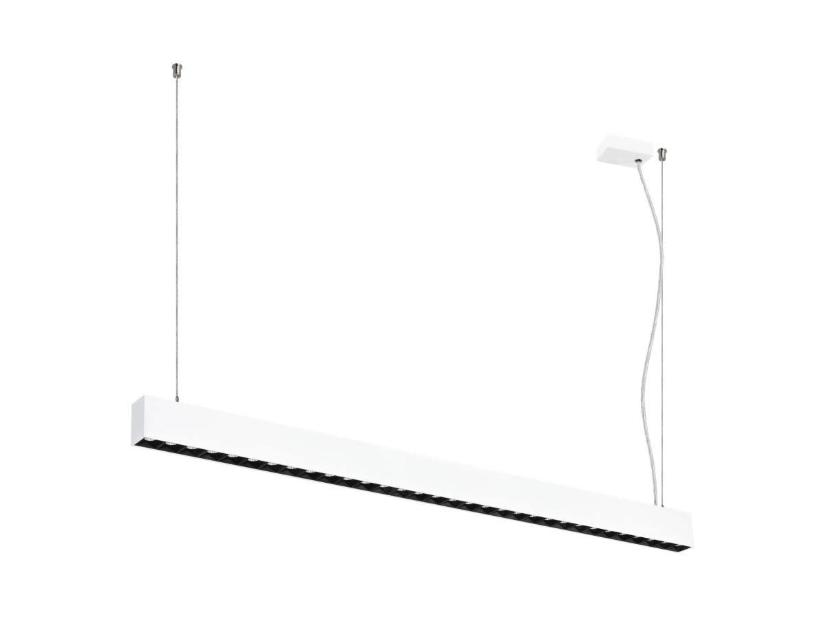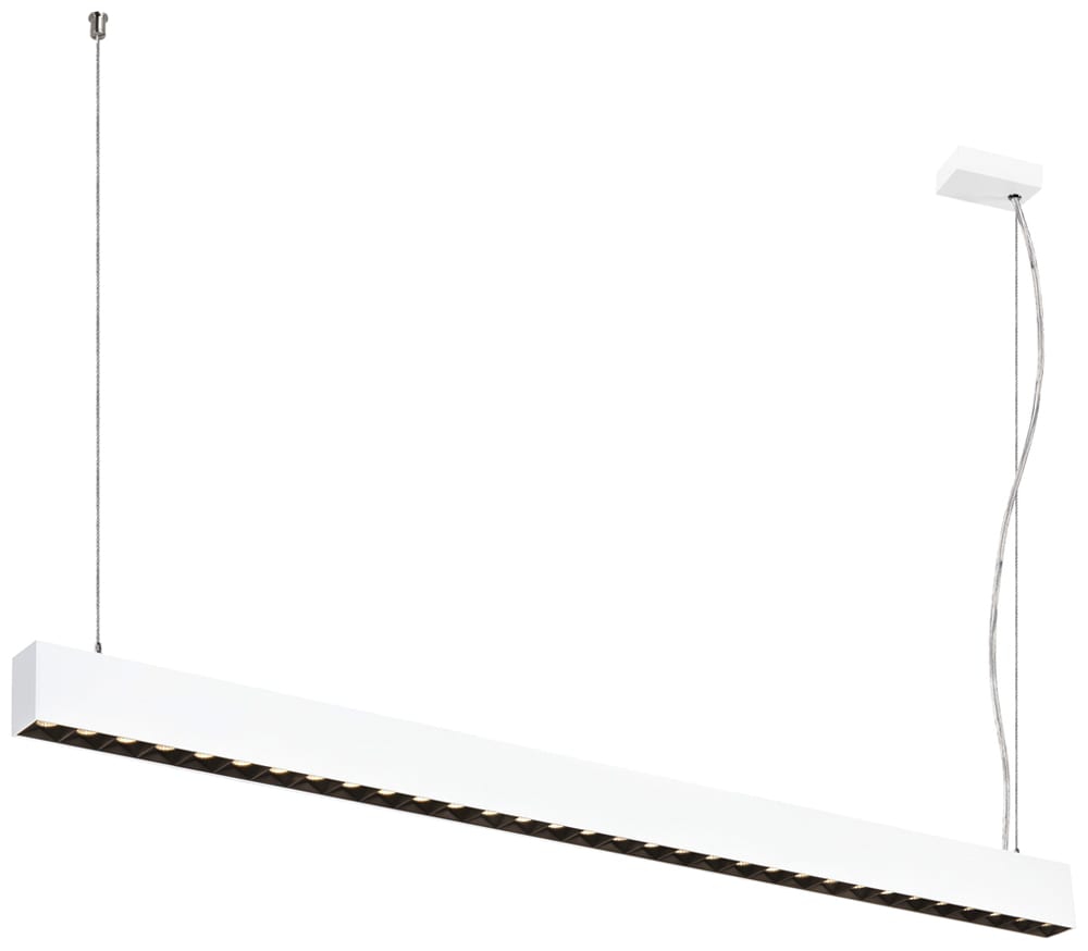 Intérieur suspensions avec corps lumineux LED fixe. Matériau principal: aluminium et Plastique PC, Couleur: blanc et noir, Dimmable: DALI,Touch, Form: rectangulaire, Puissance assignée: 60 W, Flux lumineux assigné: 7500 lm, Température de couleur (CCT): 3000K, Indice général de rendu des couleurs (IRC) Ra: 90, Maintien du flux lumineux: L80B10 ≥ 50000 h, Classe de protection (EN 61140): I, Indice de protection (DIN EN 60529): IP20, Degré de résistance aux chocs selon IEC 62262: IK02, Tension d'alimentation: 220-240V ~0/50/60 Hz, Dimension (L/W/H): ( 128.5 / 4.8 / 7.6 cm ), Poids: 3.5 kg. Le produit répond aux exigences essentielles des directives européennes applicables et de la loi sur la sécurité des produits et porte le marquage CE.SLV Référence 1010509 / EAN 4024163315159