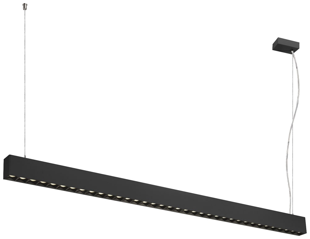 Intérieur suspensions avec corps lumineux LED fixe. Matériau principal: aluminium et Plastique PC, Couleur: noir, Dimmable: DALI,Touch, Form: rectangulaire, Puissance assignée: 70 W, Flux lumineux assigné: 8450 lm, Température de couleur (CCT): 4000K, Indice général de rendu des couleurs (IRC) Ra: 90, Maintien du flux lumineux: L80B10 ≥ 50000 h, Classe de protection (EN 61140): I, Indice de protection (DIN EN 60529): IP20, Degré de résistance aux chocs selon IEC 62262: IK02, Tension d'alimentation: 220-240V ~0/50/60 Hz, Dimension (L/W/H): ( 144.8 / 4.8 / 7.6 cm ), Poids: 3.8 kg. Le produit répond aux exigences essentielles des directives européennes applicables et de la loi sur la sécurité des produits et porte le marquage CE.SLV Référence 1010516 / EAN 4024163315081