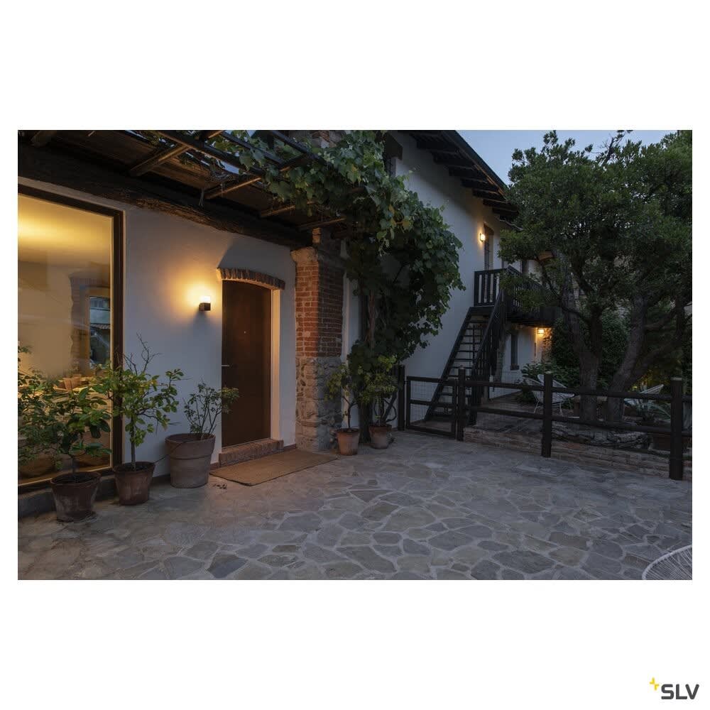 Extérieur appliques. Matériau principal: Aluminium et Acrylique, Couleur: anthracite, Culot: E27, Form: rectangulaire, Puissance assignée: 11 W, Classe de protection (EN 61140): I, Indice de protection (DIN EN 60529): IP44, Degré de résistance aux chocs selon IEC 62262: IK02, Tension d'alimentation: 220-240V ~50/60 Hz, Dimension (L/W/H): ( 12.9 / 8.5 / 17 cm ), Poids: 0.601 kg. Le produit répond aux exigences essentielles des directives européennes applicables et de la loi sur la sécurité des produits et porte le marquage CE.SLV Référence 1006183 / EAN 4024163262705