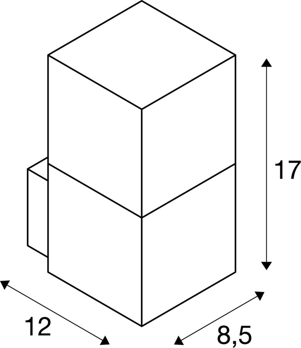 Extérieur appliques. Matériau principal: Aluminium et plastique, Couleur: anthracite, Culot: E27, Form: rectangulaire, Puissance assignée: 11 W, Classe de protection (EN 61140): I, Indice de protection (DIN EN 60529): IP44, donc protection contre les corps étrangers solides > 1mm et protection contre les éclaboussures d'eau de toutes les directions, Degré de résistance aux chocs selon IEC 62262: IK02, Tension d'alimentation: 230V ~50Hz, Dimension (L/W/H): ( 11.5 / 8.5 / 17 cm ), Poids: 0.565 kg. Le produit répond aux exigences essentielles des directives européennes applicables et de la loi sur la sécurité des produits et porte le marquage CE.SLV Référence 231205 / EAN 4024163096515