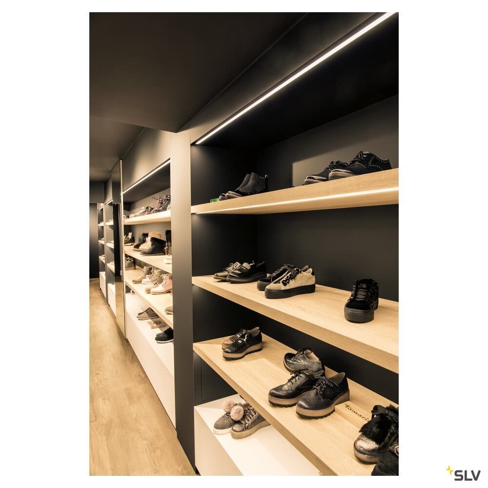 Profil GRAZIA 10 de grande taille, en aluminium, à encastrer au plafond ou au mur, pour la pose de bandeaux LED. Les caches en plastique satiné disponibles séparément fournissent une lumière très douce. Profil disponible en trois couleurs et longueurs. SLV recommande l'utilisation d'embouts (vendus séparément) pour la fixation du profil.