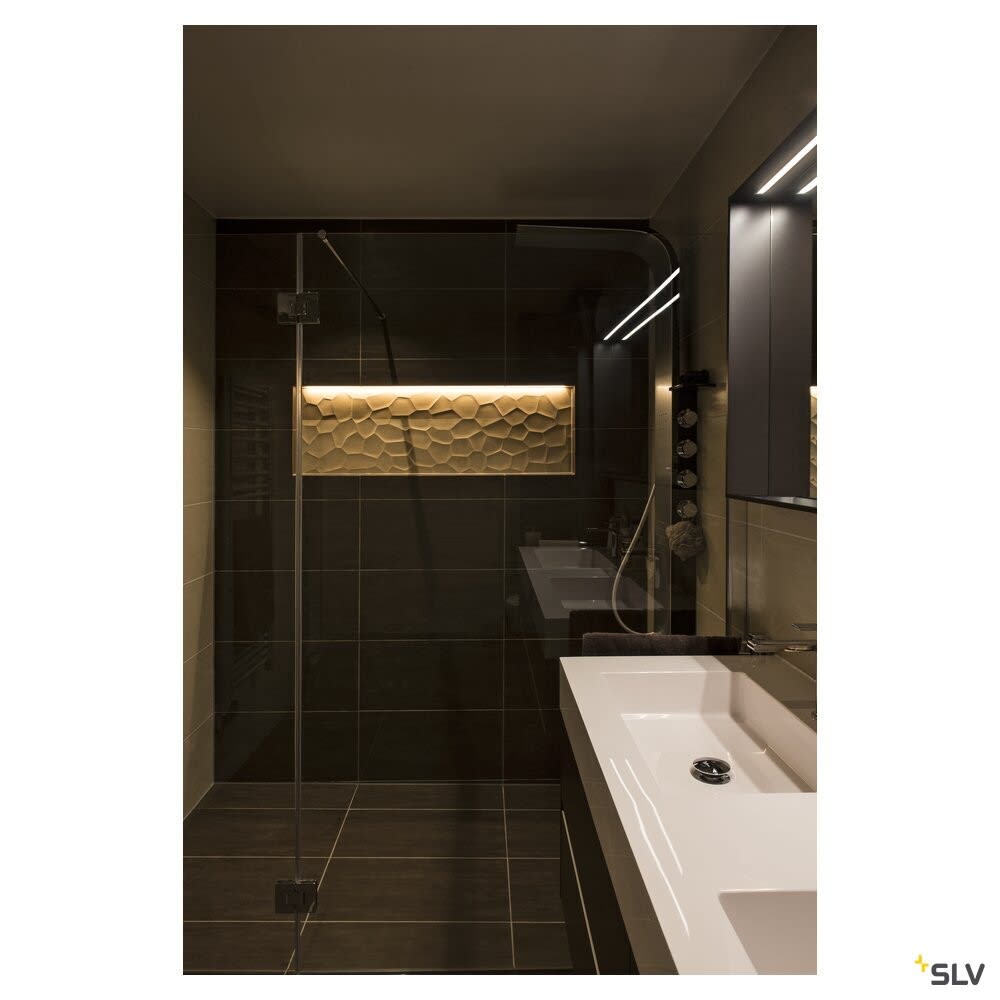 Profil GRAZIA 10 de grande taille, en aluminium, à encastrer au plafond ou au mur, pour la pose de bandeaux LED. Les caches en plastique satiné disponibles séparément fournissent une lumière très douce. Profil disponible en trois couleurs et longueurs. SLV recommande l'utilisation d'embouts (vendus séparément) pour la fixation du profil.