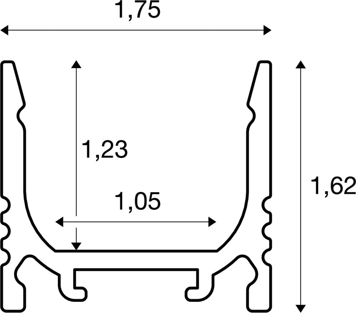 Profil en saillie. Matériau principal: Aluminium, Couleur: noir, Indice de protection (DIN EN 60529): IP20, donc Protection contre les corps étrangers solides d'un diamètre supérieur à 12,5 mm, Dimension (L/W/H): ( 200 / 1.75 / 1.62 cm ), Poids: 0.373 kg.SLV Référence 1000465 / EAN 4024163187572
