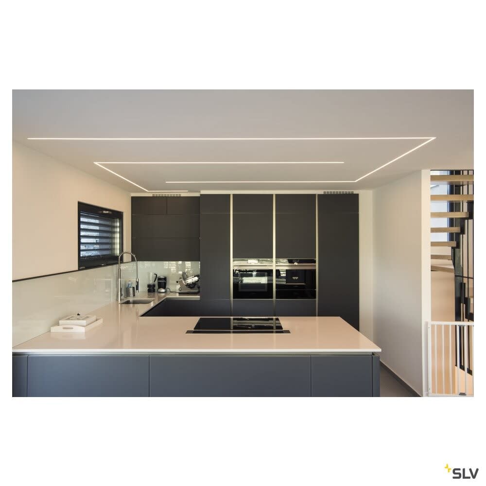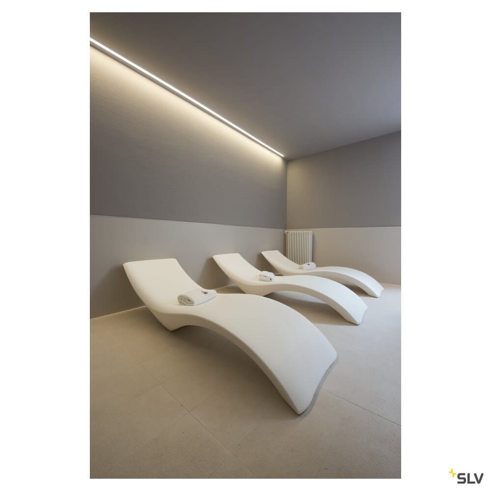 Profil GRAZIA 10 de grande taille, en aluminium, à encastrer au plafond ou au mur, pour la pose de bandeaux LED. Les caches en plastique satiné disponibles séparément fournissent une lumière très douce. Profil disponible en trois couleurs et longueurs. SLV recommande l'utilisation d'embouts (vendus séparément) pour la fixation du profil.