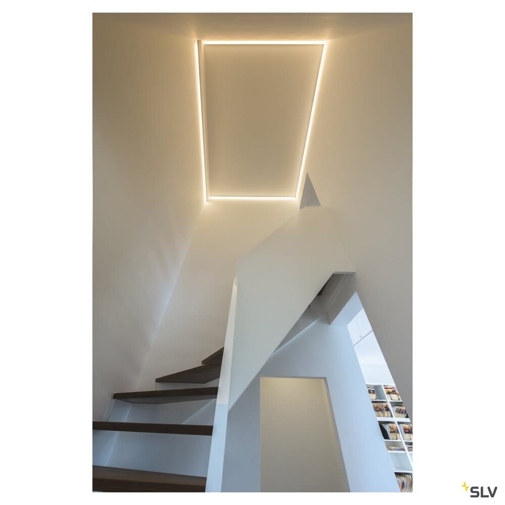 Profil GRAZIA 10 de grande taille, en aluminium, à encastrer au plafond ou au mur, pour la pose de bandeaux LED. Les caches en plastique satiné disponibles séparément fournissent une lumière très douce. Profil disponible en trois couleurs et longueurs. SLV recommande l'utilisation d'embouts (vendus séparément) pour la fixation du profil.