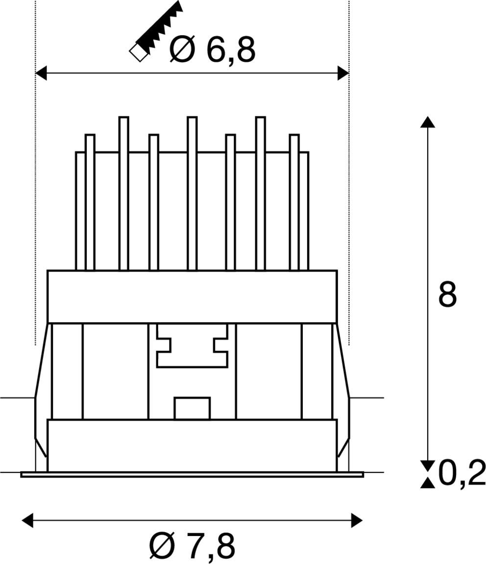 Intérieur plafonnier encastré avec corps lumineux LED fixe. Matériau principal: Aluminium et polycarbonate (PC), Couleur: noir, Form: rond, Puissance assignée: 9 W, Flux lumineux assigné: 445 lm, Température de couleur (CCT): 3000K, Indice général de rendu des couleurs (IRC) Ra: 80, Maintien du flux lumineux: L70B50 ≥ 30000 h, Classe de protection (EN 61140): III, Indice de protection (DIN EN 60529): IP20, donc Protection contre les corps étrangers solides d'un diamètre > 12,5 mm, Tension d'alimentation: 500mA, Diamètre du luminaire: 7.8 cm, Diamètre de la découpe: 6.8 cm, Dimension (L/W/H): ( 7.8 / 7.8 / 8.2 cm ), Poids: 0.186 kg. Le produit répond aux exigences essentielles des directives européennes applicables et de la loi sur la sécurité des produits et porte le marquage CE.SLV Référence 1002592 / EAN 4024163228176