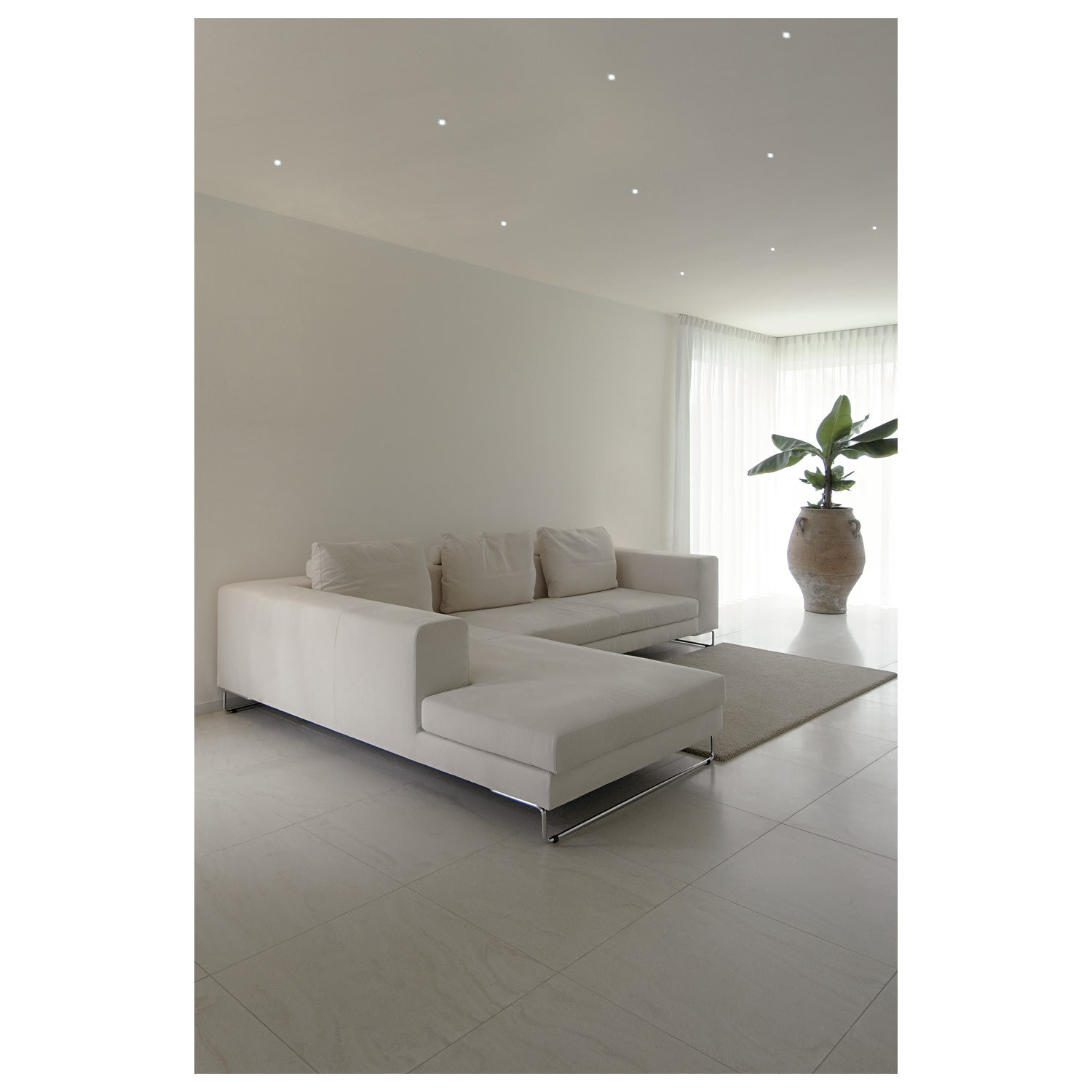 Encastré basse tension rigide de la gamme HORN. La source de ce luminaire en acier est intégrée en retrait, ce qui lui confère une apparence originale. Des versions 230V et à plusieurs lampes sont également disponibles.