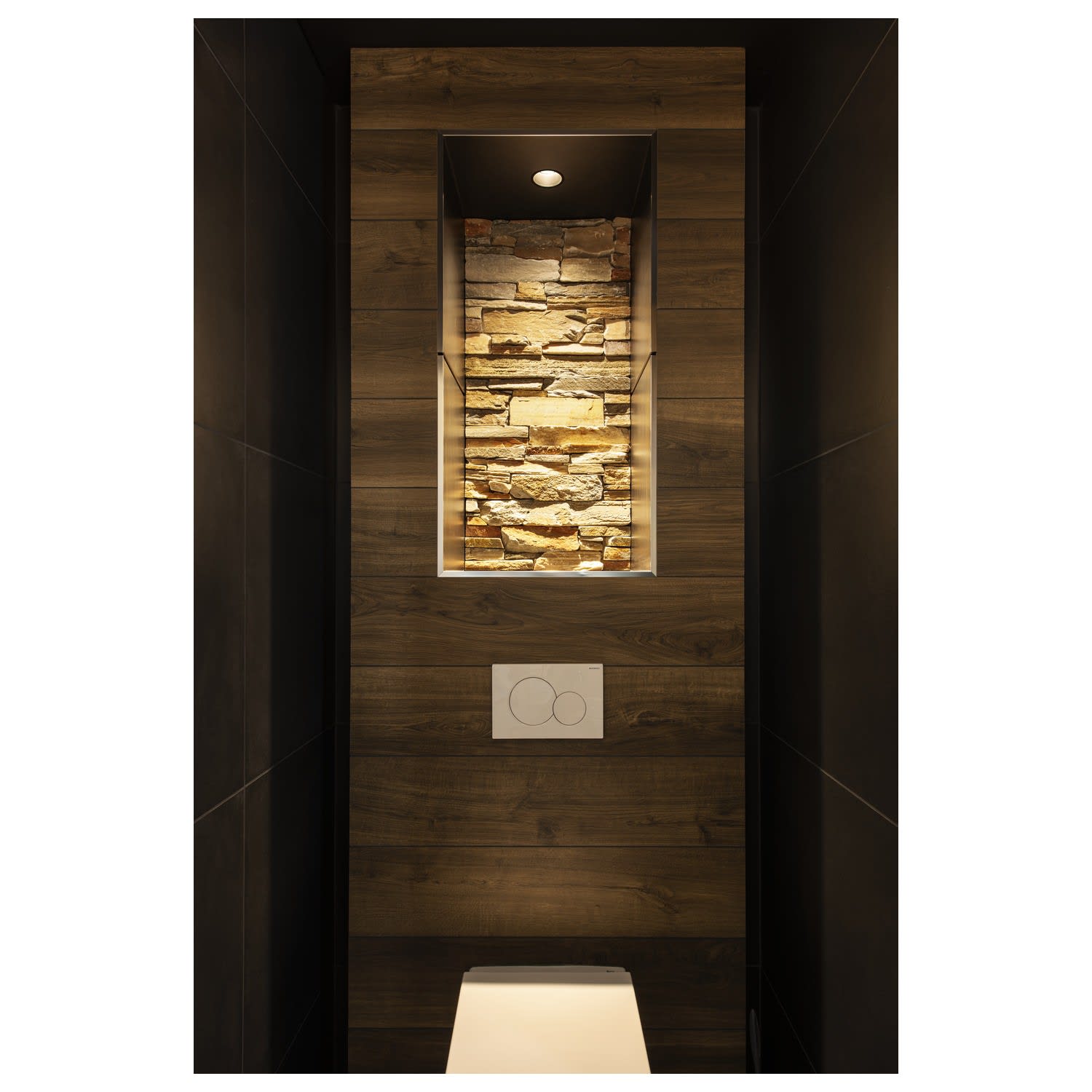 Encastré basse tension rigide de la gamme HORN. La source de ce luminaire en acier est intégrée en retrait, ce qui lui confère une apparence originale. Des versions 230V et à plusieurs lampes sont également disponibles.