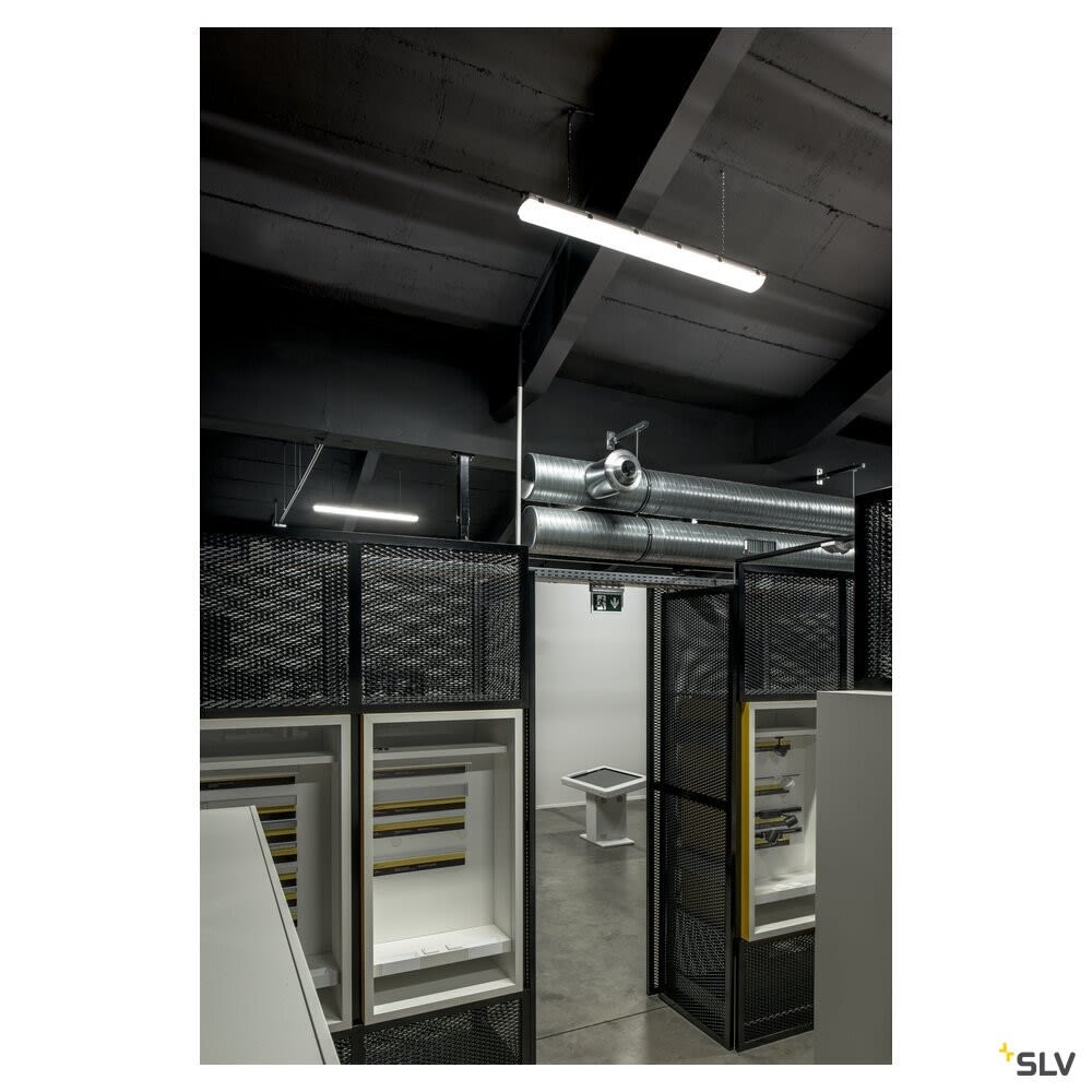 Extérieur applique murale ou de plafond avec corps lumineux LED fixe. Matériau principal: polycarbonate (PC), Couleur: gris, Form: rectangulaire, Puissance assignée: 55 W, Flux lumineux assigné: 7600 lm, Température de couleur (CCT): 4000K, Indice général de rendu des couleurs (IRC) Ra: 80, Maintien du flux lumineux: L70B50 ≥ 50000 h, Classe de protection (EN 61140): I, Indice de protection (DIN EN 60529): IP66, donc protection contre l'intrusion de poussière et protection contre les jets d'eau (jusqu'à 1 bar) de toutes les directions, Degré de résistance aux chocs selon IEC 62262: IK08, Tension d'alimentation: 220-240V ~50/60Hz sek. 1050mA, Dimension (L/W/H): ( 156 / 12 / 10.8 cm ), Poids: 2.938 kg. Le produit répond aux exigences essentielles des directives européennes applicables et de la loi sur la sécurité des produits et porte le marquage CE.SLV Référence 1001317 / EAN 4024163196178